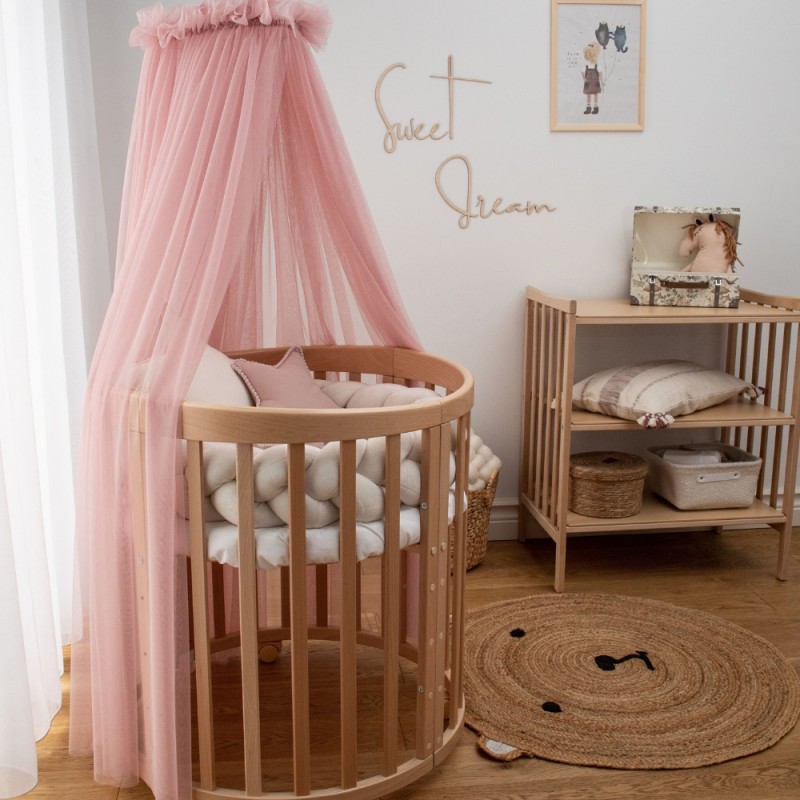 różowe łóżko z baldachimem