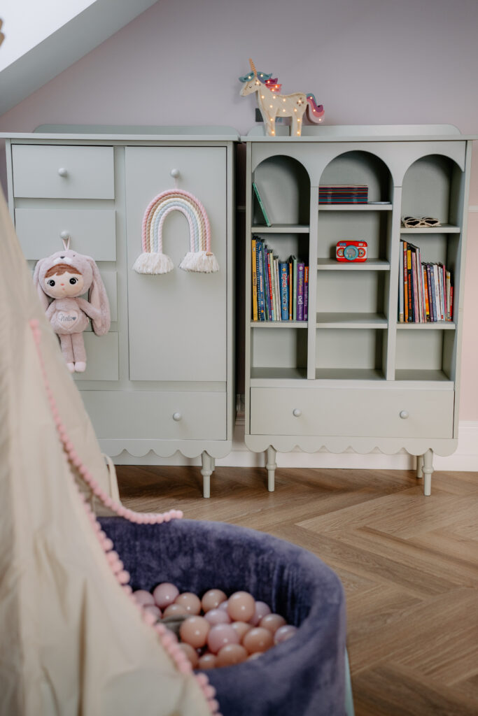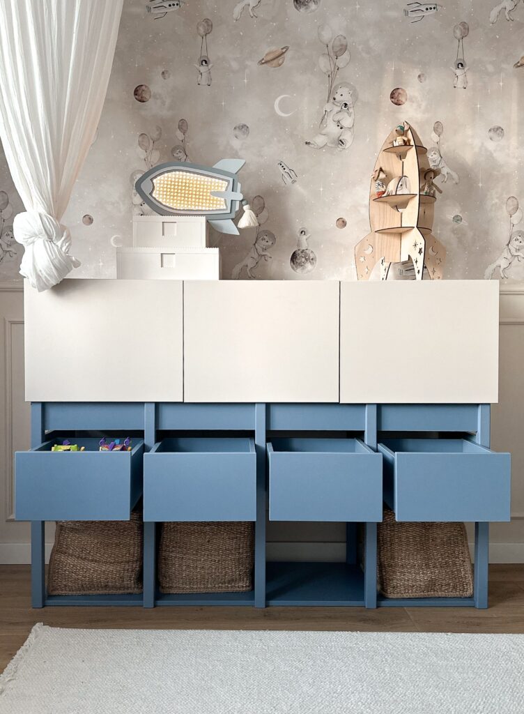 - Meble modułowe – umożliwiają elastyczne dopasowanie do potrzeb dzieci i metrażu pokoju. Z łatwością zmienisz ich układ, kiedy dzieci podrosną lub zmienią się ich preferencje.