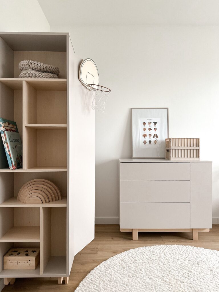 3. Szafa z miejscem na zabawki, książki i… schowki