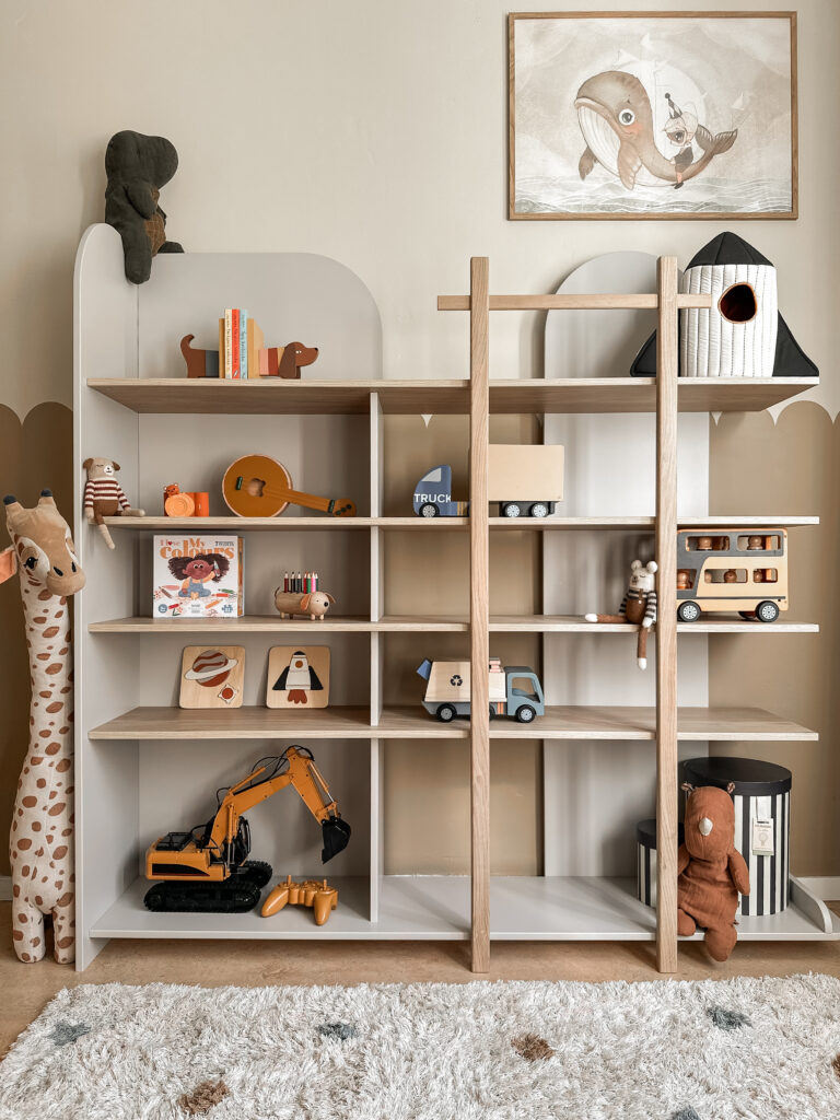 - Półki ścienne w ciekawych kształtach (domki, chmurki, drzewka) – idealne na książeczki i figurki.