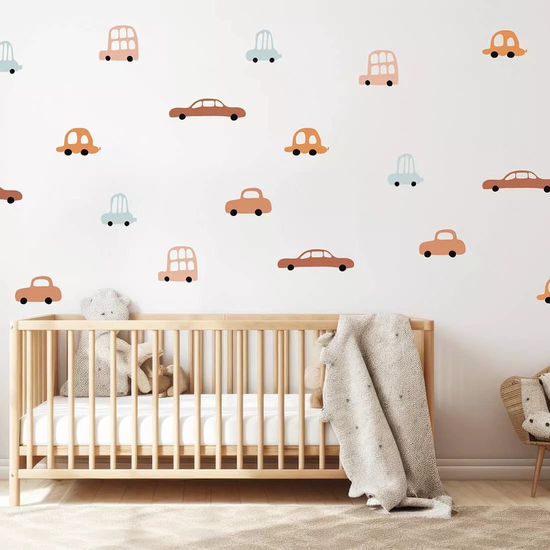 Naklejki na ścianę autka zachwycą każdego małego fana motoryzacji. Idealna propozycja dekoracji pokoju dla chłopca.