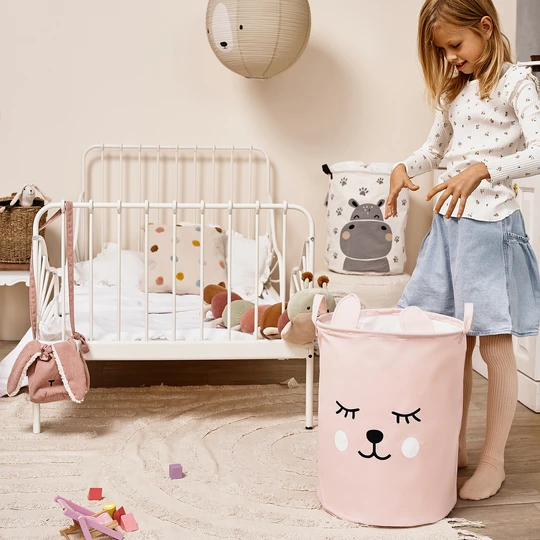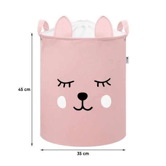 Wybierz kosz na zabawki bawełniany RÓŻOWY MIŚ XL i połącz funkcjonalność z ciepłym, dziecięcym designem.