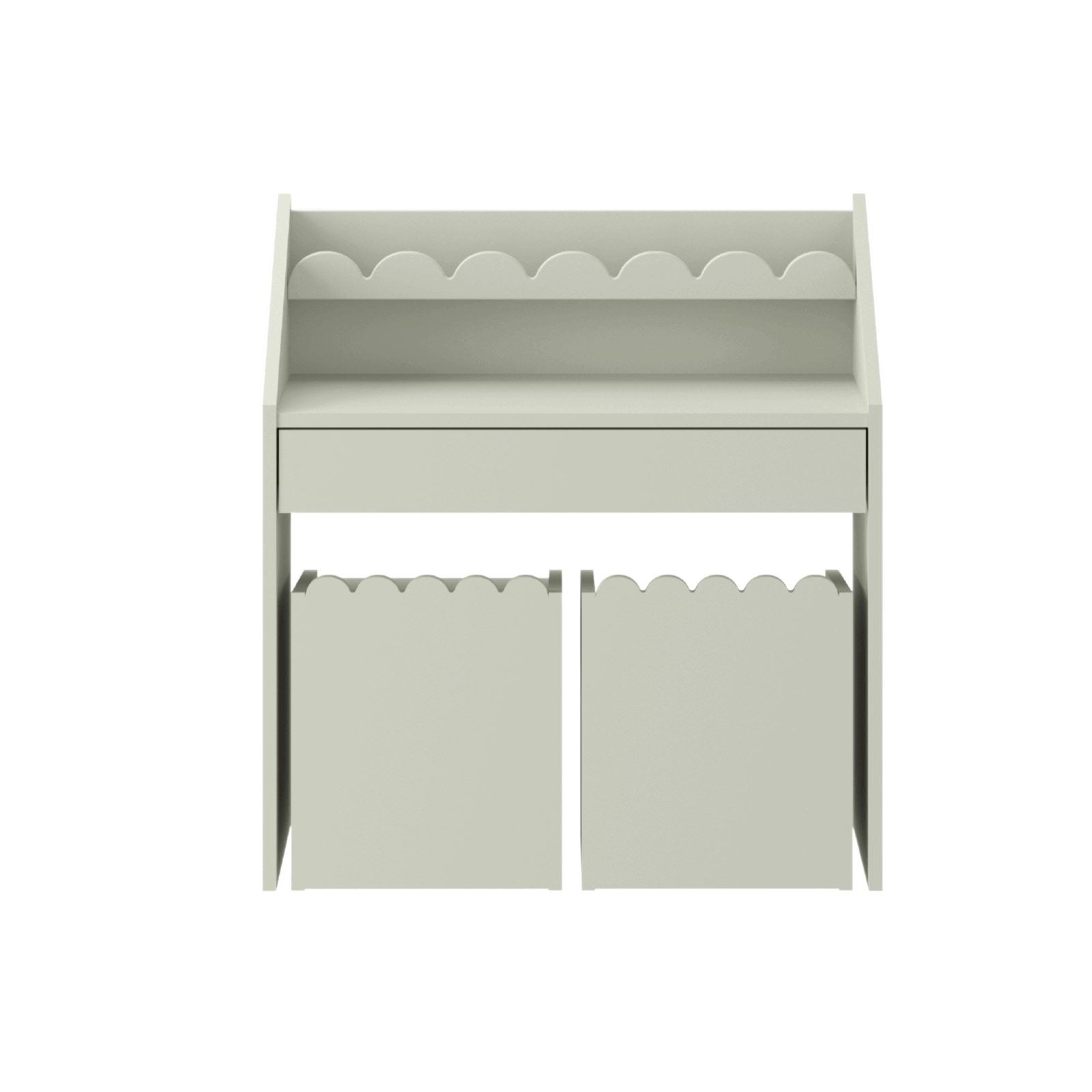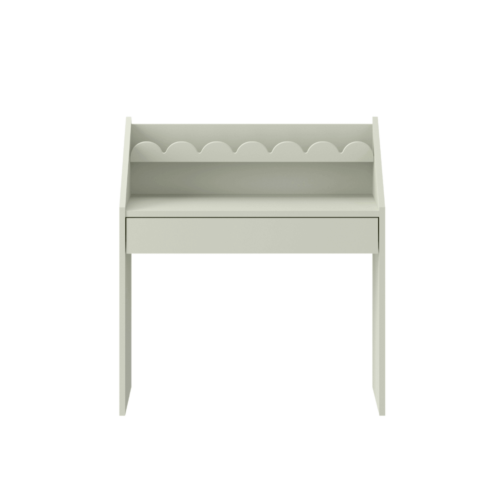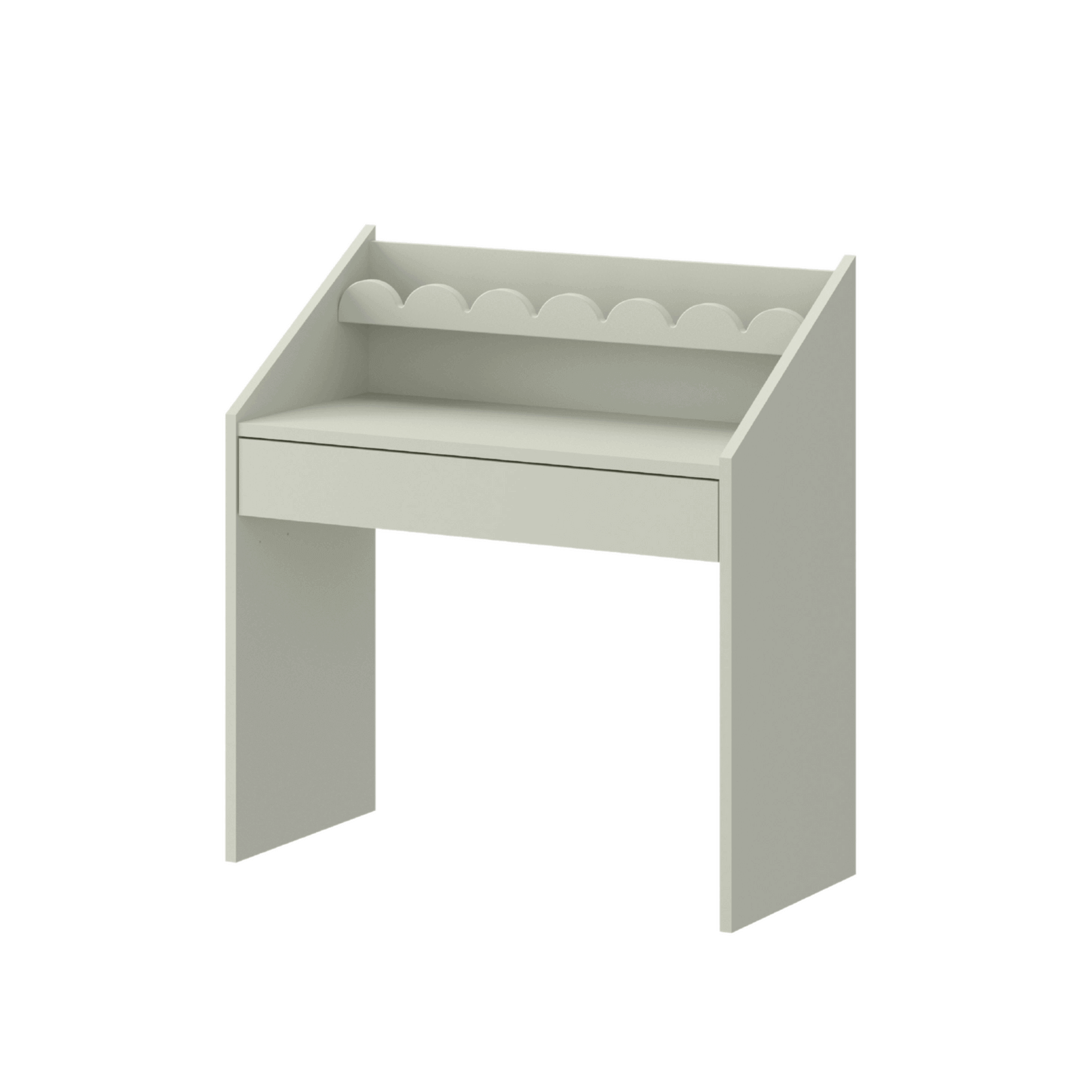 Biurko Book Nook Sage to coś więcej niż zwykłe biurko – to dziecięca przestrzeń do samodzielności, kreatywności i koncentracji. Dzięki możliwości regulacji blatu na dwóch poziomach (47,5 cm i 55 cm), mebel „rośnie” wraz z dzieckiem, wspierając je na różnych etapach rozwoju – od pierwszych prób rysowania po szkolne zadania.