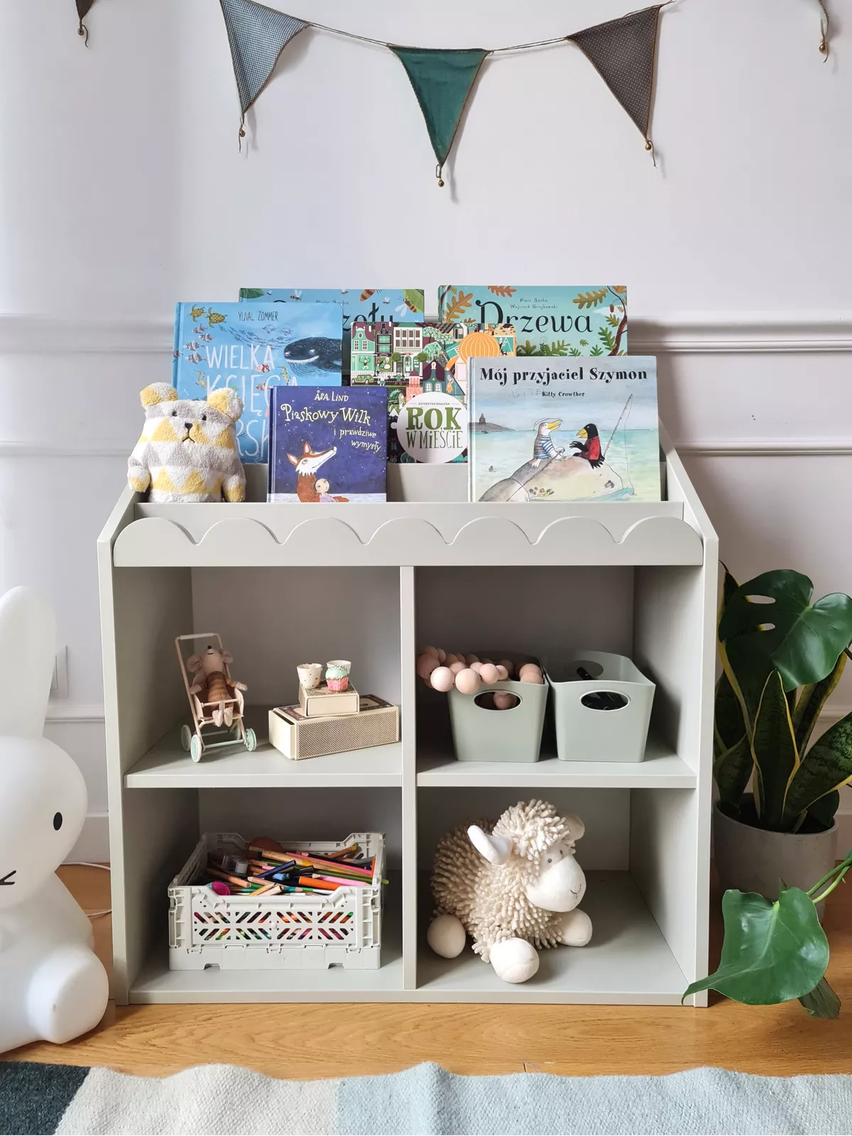 Dolna część przeznaczona na zabawki oraz górna jako biblioteczka to propozycja, która zainspiruje do nauki i zabawy.