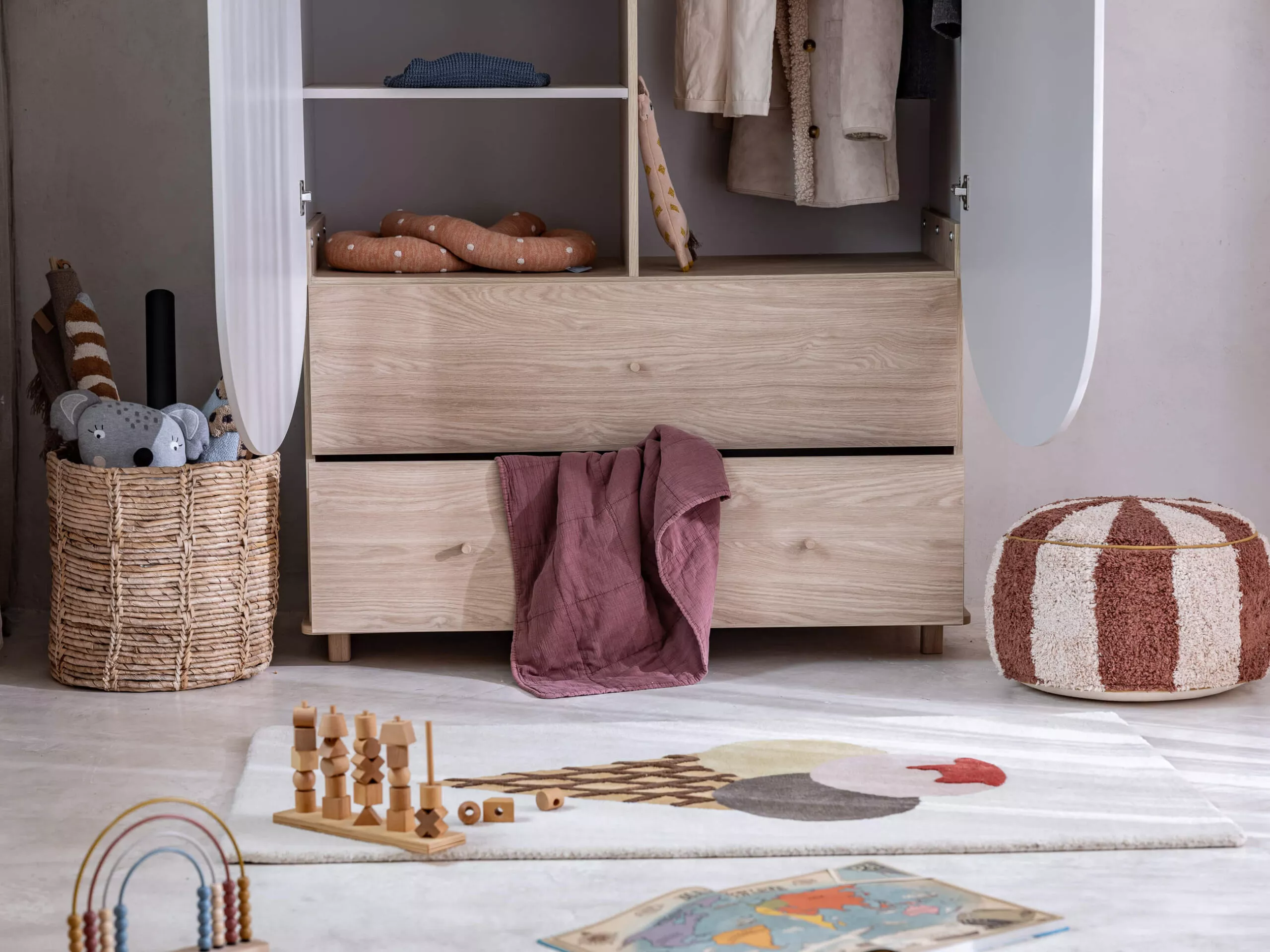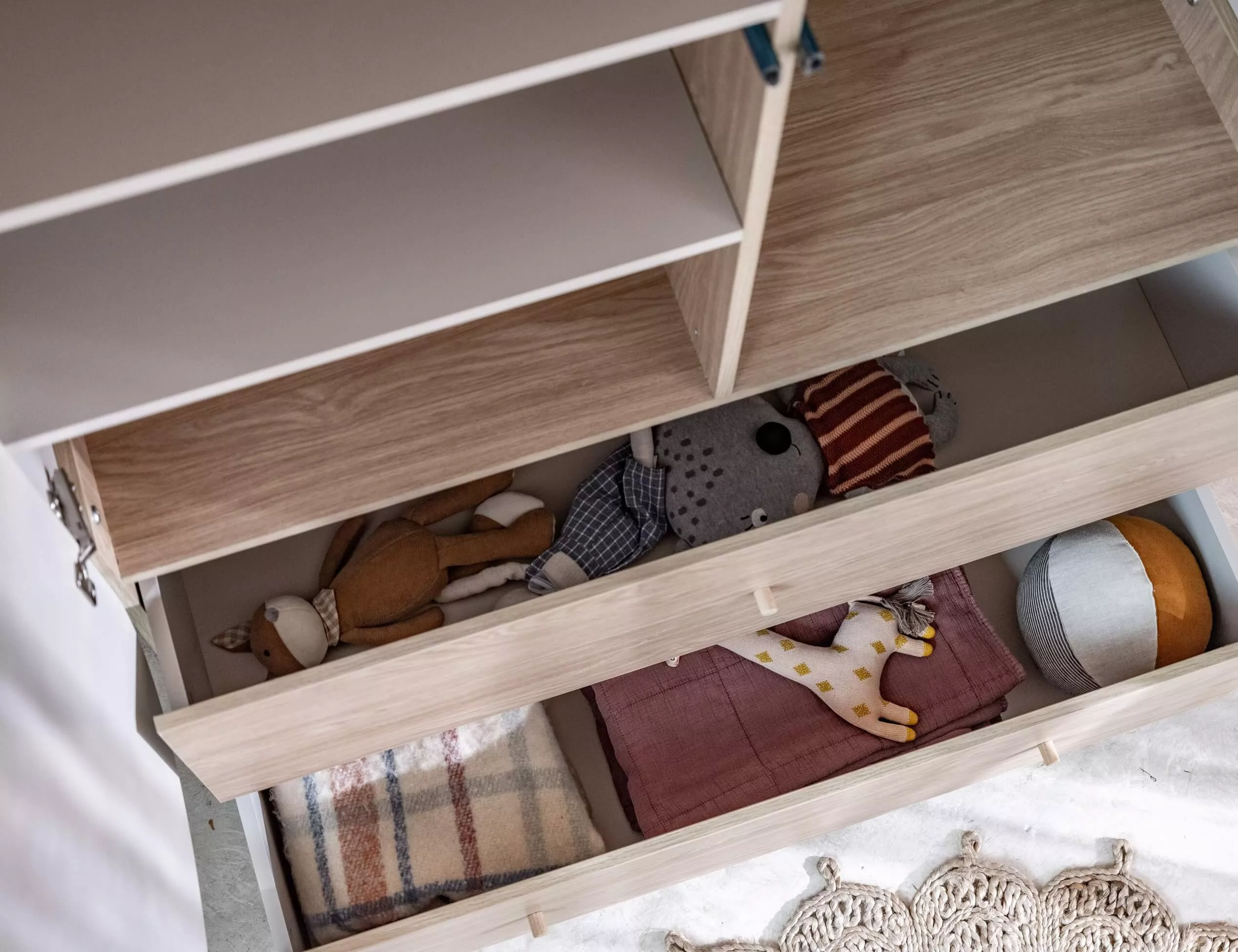płyta meblowa, mdf, drewno dębowe (uchwyty, nóżki) – płyty produkowana zgodnie z normą EN71/3 – norma dotycząca mebli dziecięcych oraz zabawek