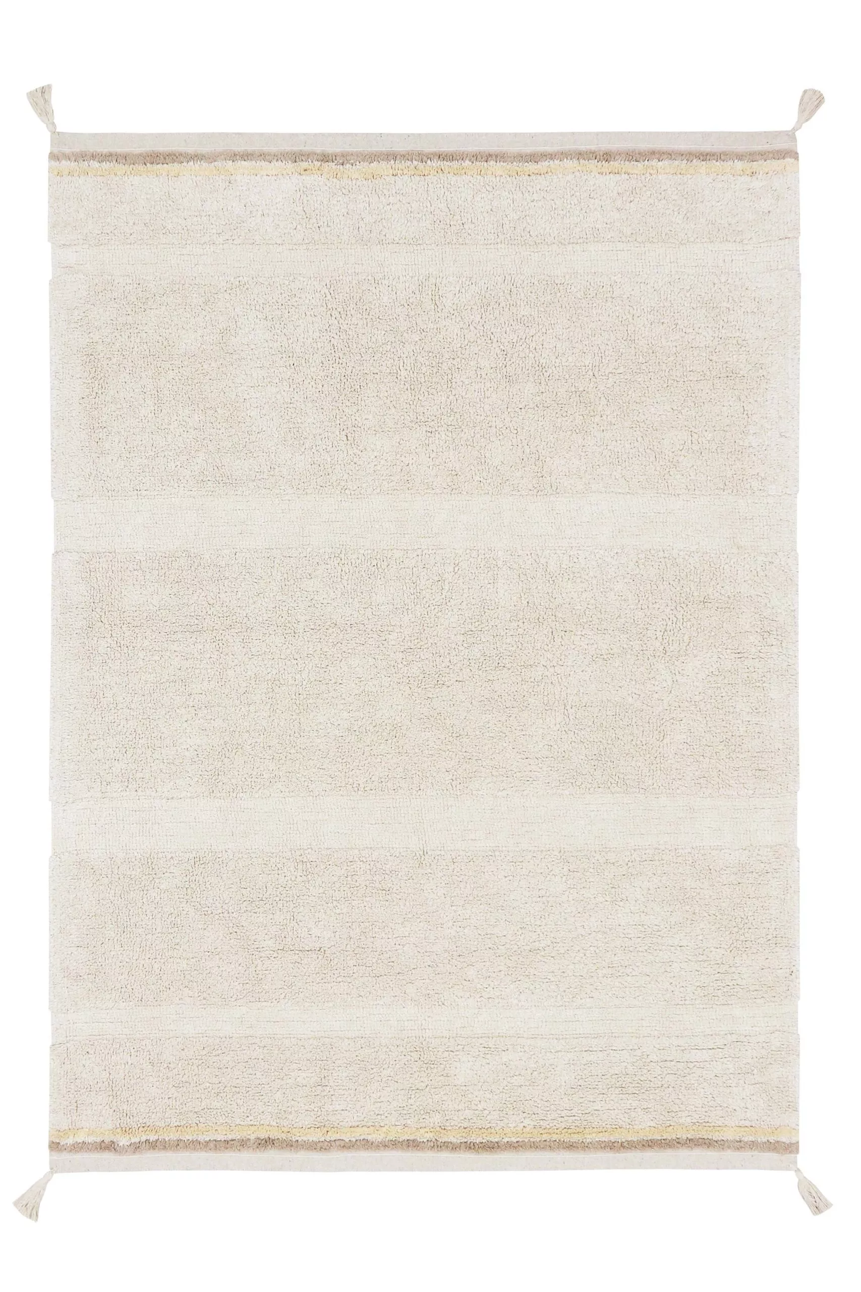 Ten bawełniany dywan do prania w pralce jest dostępny w trzech wersjach kolorystycznych, od naturalnej beżowej niefarbowanej bawełny po rumiany róż i złocistożółty.