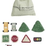 Dzieci mogą puścić wodze fantazji na tym pluszowym, pranym w pralce dywaniku do zabawy uwieczniającym mapę miasta, w komplecie z własnymi drogowskazami, sygnalizacją świetlną, drzewami, e-samochodami, rowerami, a nawet stacją ładowania pojazdów elektrycznych! Najmłodsi mogą nauczyć się tworzyć bardziej zieloną przyszłość, bawiąc się nawet 9 akcesoriami w zestawie, wszystkie wykonane ręcznie z naturalnej bawełny, aby zapewnić bezpieczeństwo najmłodszym, zapakowane w małą bawełnianą torbę, która ułatwia czyszczenie.