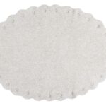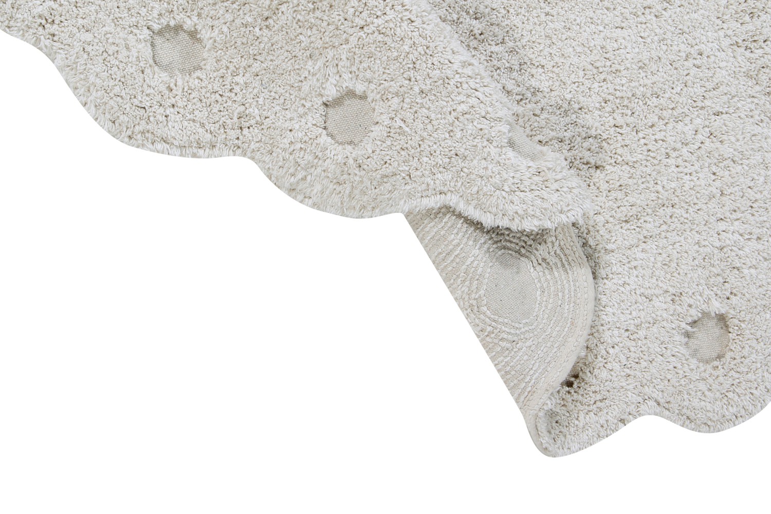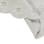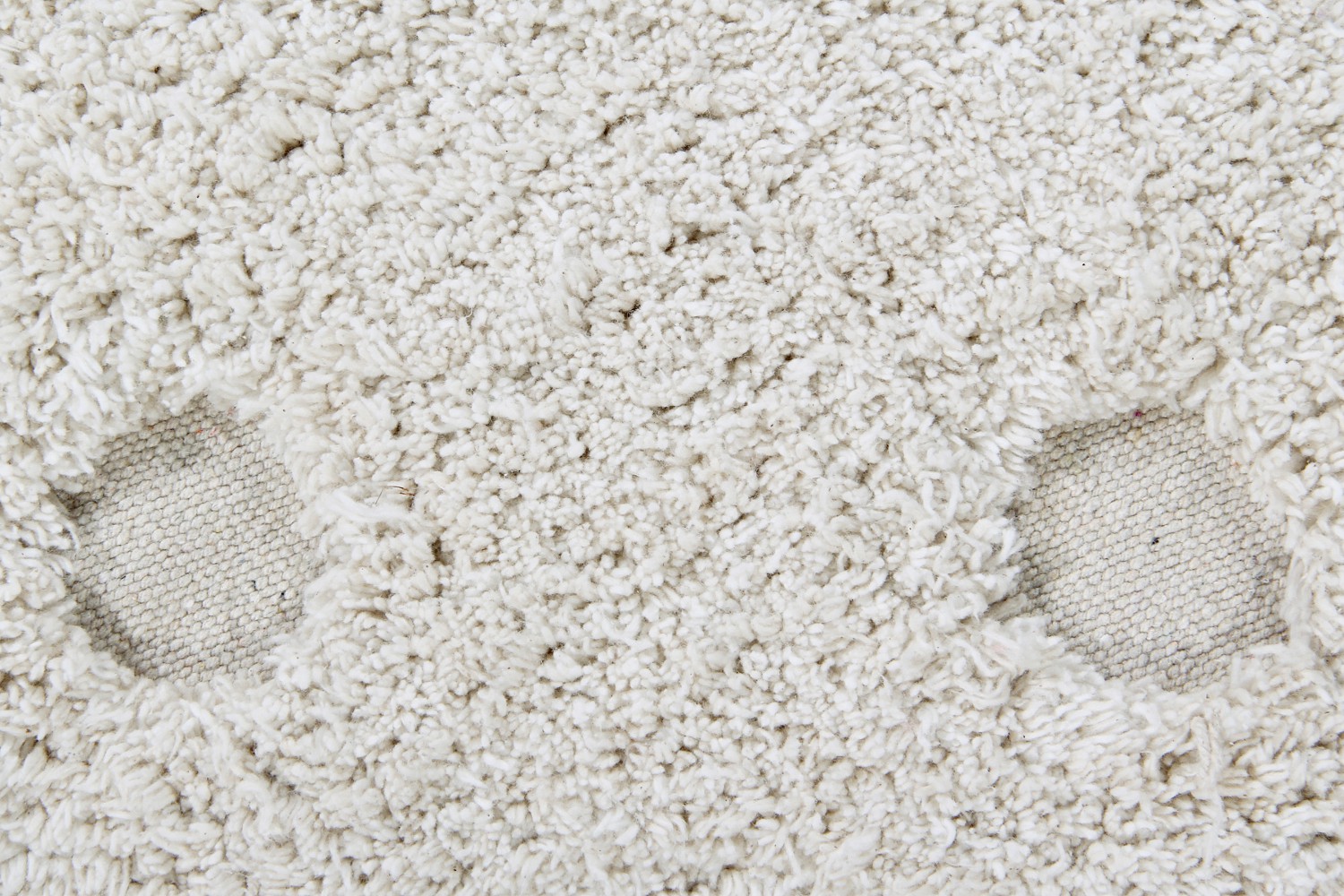 Dywan Picone Ivory wykonany jest z mieszanki przędzy w kolorze kości słoniowej i naturalnym, z zaokrąglonymi krawędziami dookoła i gołymi plamami ukazującymi podstawę z naturalnego płótna.