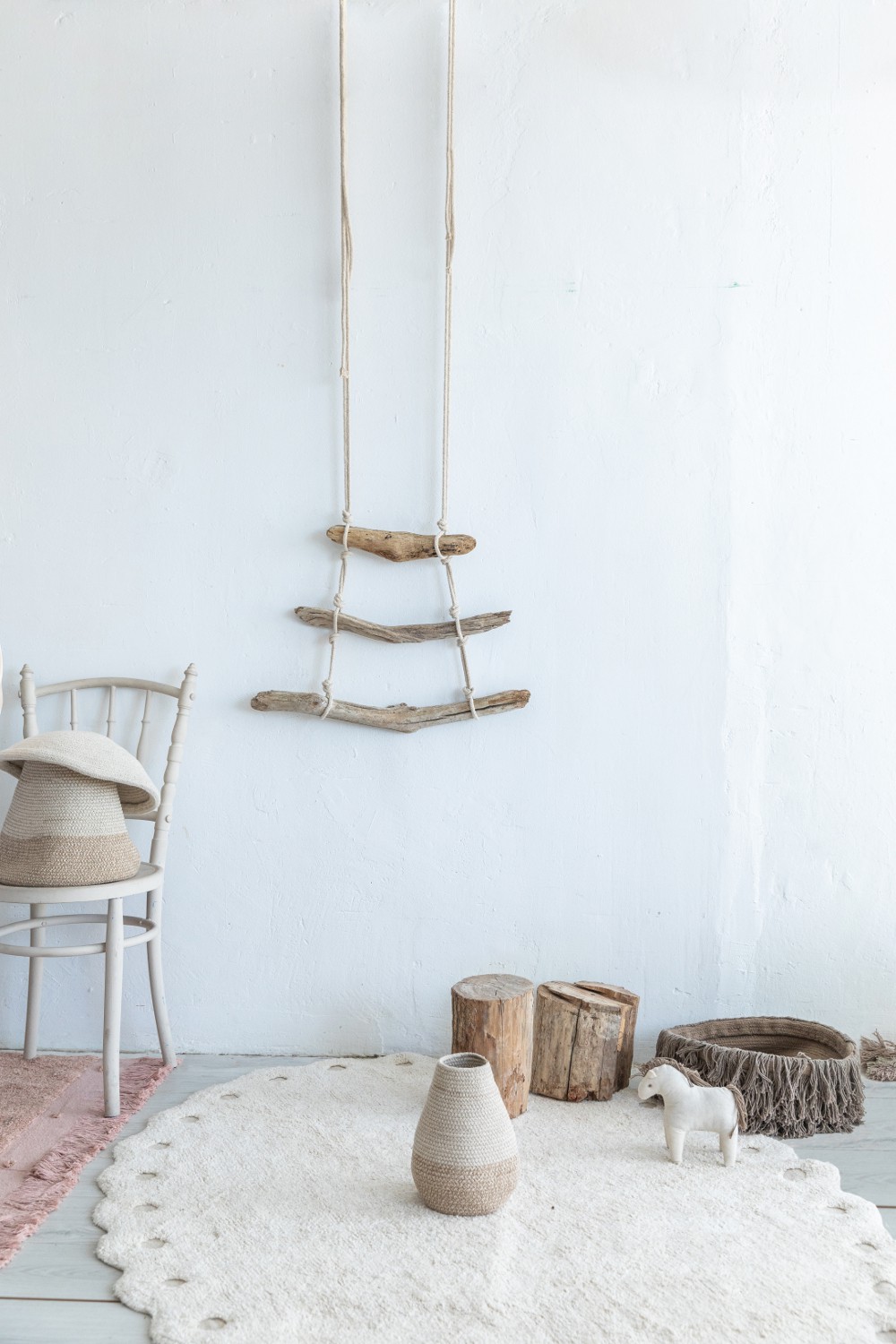 Inspiracją do stworzenia dywanu Pine Cone były zmiany odcieni, których te szyszki, zawierające nasiona, doświadczają w ciągu cyklu swojego życia i na przestrzeni pór roku – są zielone, kiedy są młode, brązowe, kiedy są dojrzałe, różowe latem lub w kolorze kości słoniowej zimą. Do palety dodano perłowy odcień niebieskiego, po prostu dlatego, że wyglądał świetnie na dywanie! Dywan jest dostępny w trzech kolorach zaczerpniętych z tej sezonowej palety, został wykonany ręcznie z użyciem mieszanej bawełnianej przędzy, która łączy kolor płótna z kolorem kości słoniowej (Linen Ivory), błękit nieba z perłowym szarym (Pearl Blue) oraz przydymiony róż z kolorem płótna (Vintage Nude).