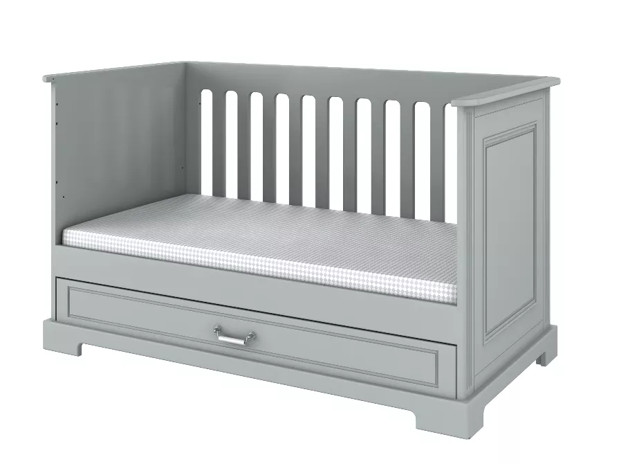 Łóżeczko posiada trzy poziomy regulacji wysokości stelaża pod materac. Łóżeczko, dzięki demontażowi przedniej ramki, staje się tapczanem/sofą dla starszaka – idealnie rozwiązanie dla rodziców, którzy cenią sobie funkcjonalność mebli.