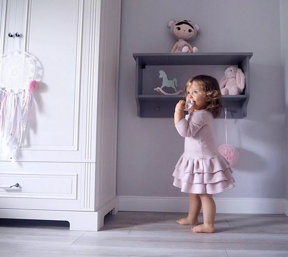 Półkę można powiesić nad komodą, dzięki czemu zyskujemy miejsce na wszelkie akcesoria niezbędne przy pielęgnacji dziecka. Może być również miejscem, które będzie przeznaczone na rodzinne zdjęcia, dziecięce książeczki i pluszaki.