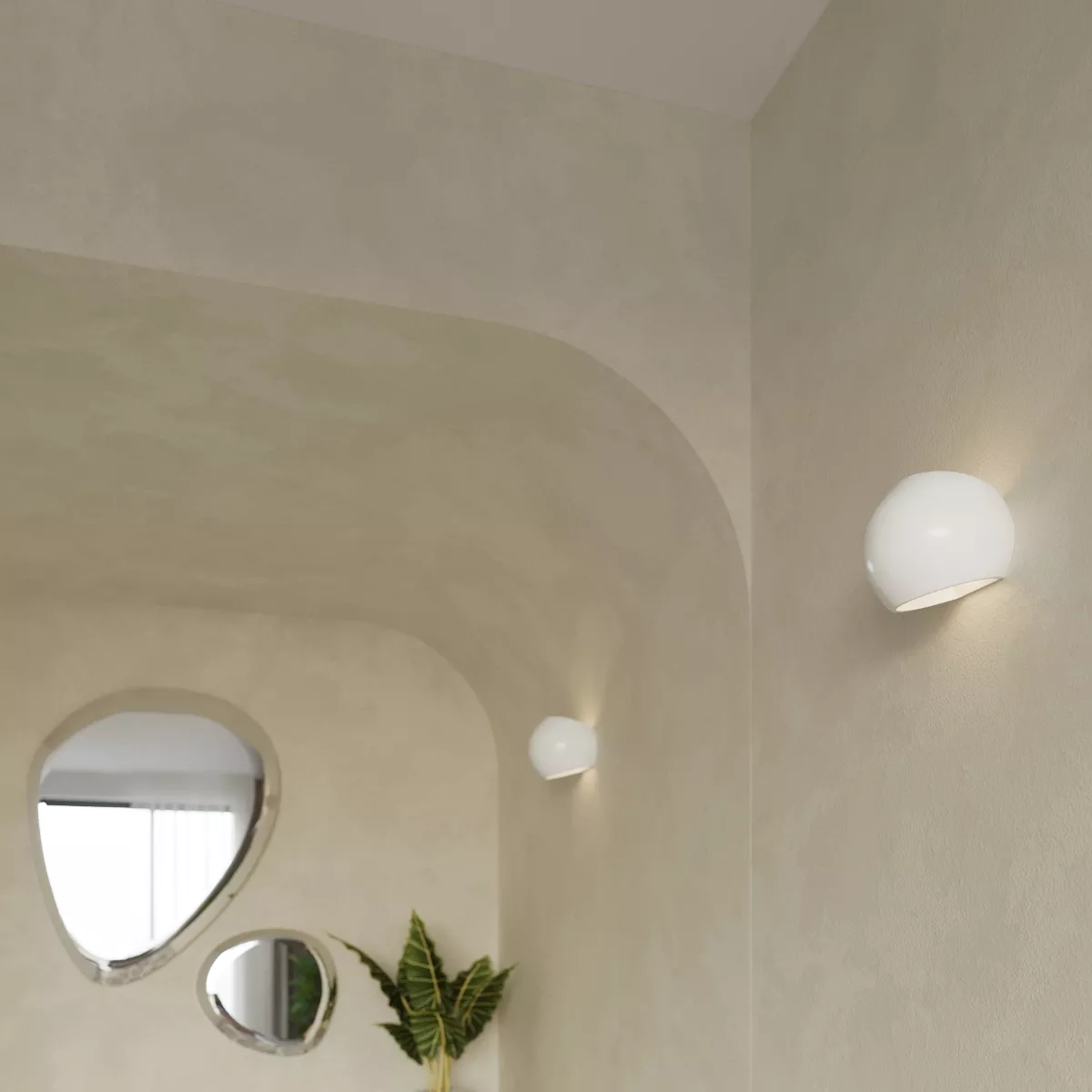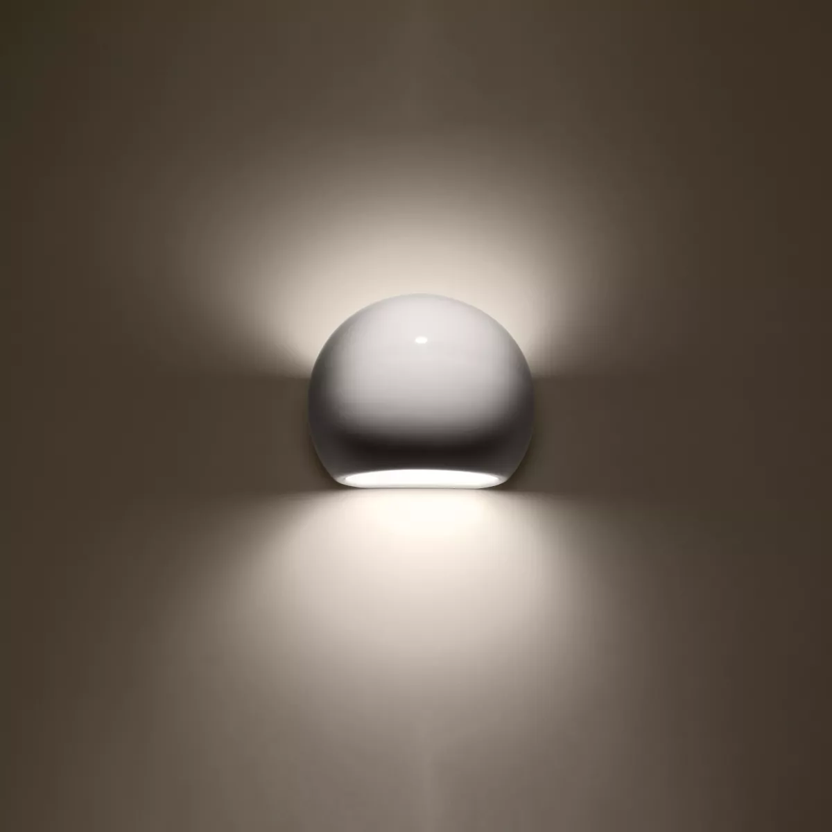 Światło w kinkiecie rozchodzi się górą i dołem, a obudowa z białej, lakierowanej ceramiki w połączeniu z podświetlaną powierzchnią tworzy piękną wizualną kompozycję. Kinkiet świetnie zaprezentuje się w nowoczesnych wnętrzach, zachwycając swoją lekkością i zgrabnym kształtem.