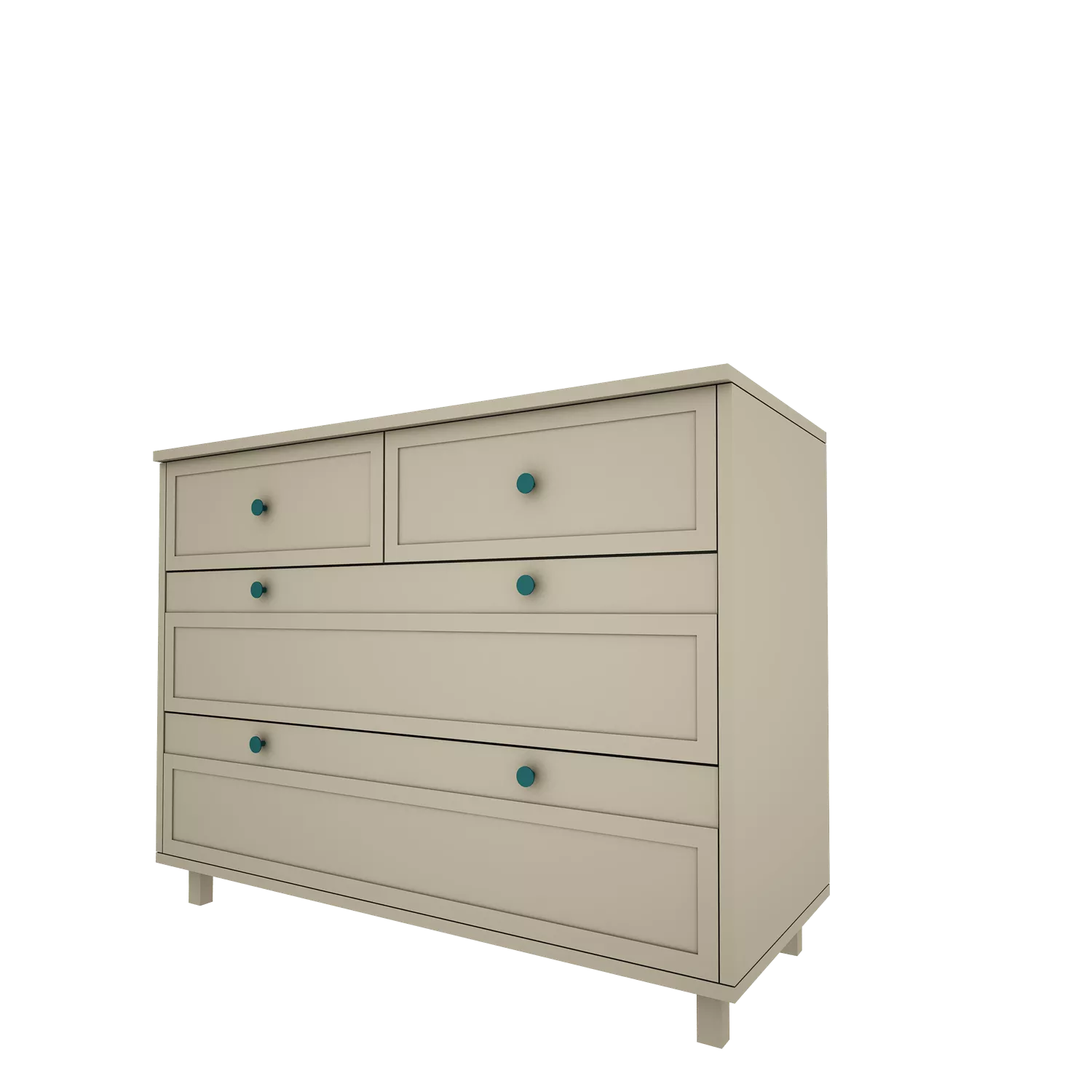 Komoda posiada trzy pojemne szuflady wyposażone w prowadnice z samodomykiem.