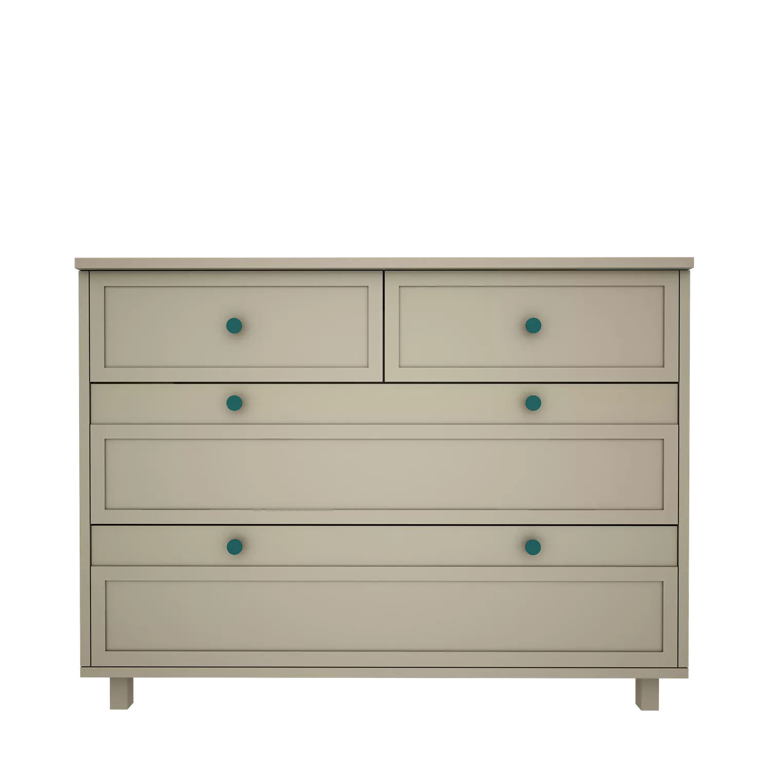 malowana płyta MDF (fronty + blat górny), płyty meblowej (korpus, półki, regał) oraz drewno bukowe (nogi) – wyprodukowane zgodnie z normą EN71/3 – norma dotycząca mebli dziecięcych oraz zabawek