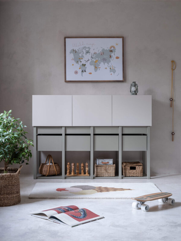 płyta meblowa, mdf, drewno sosnowe (nogi) – płyty produkowana zgodnie z normą EN71/3 – norma dotycząca mebli dziecięcych oraz zabawek