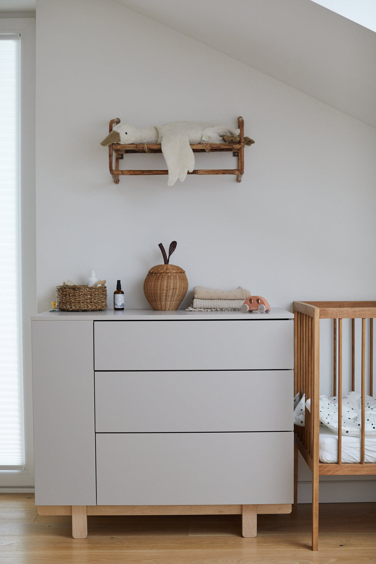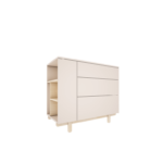 Trzy przestronne szuflady zapewniają mnóstwo miejsca na przechowywanie ubrań, zabawek czy innych dziecięcych skarbów. Dzięki zastosowaniu systemu push-to-open, otwieranie szuflad jest dziecinnie proste – wystarczy lekkie naciśnięcie, by uzyskać dostęp do ich zawartości. Bez uchwytów, bez problemów – idealne rozwiązanie do pokoju dziecięcego, gdzie bezpieczeństwo i estetyka idą w parze.
