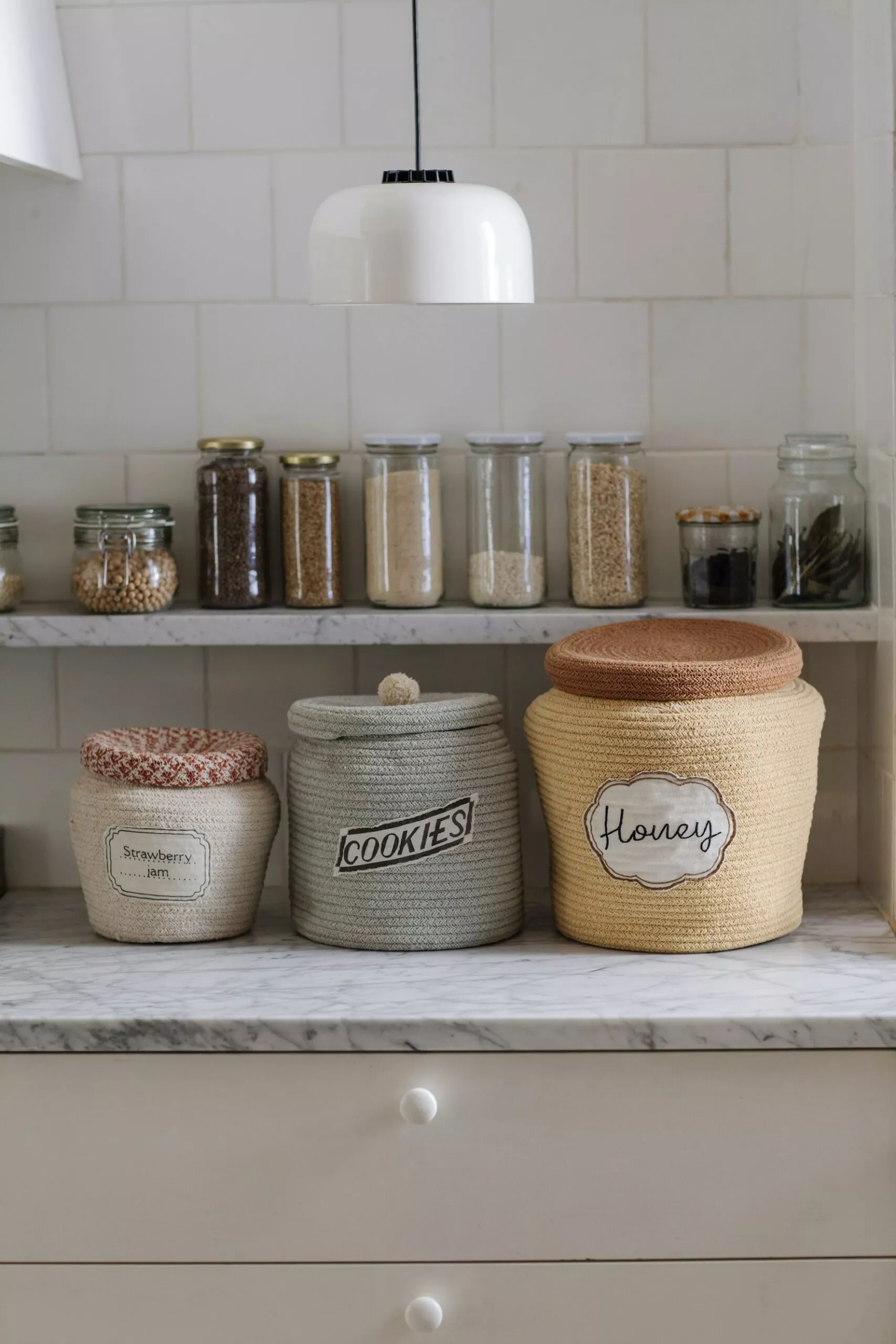 Mały kosz do przechowywania przypominający tradycyjny słoik po dżemie z babcinej kuchni.
