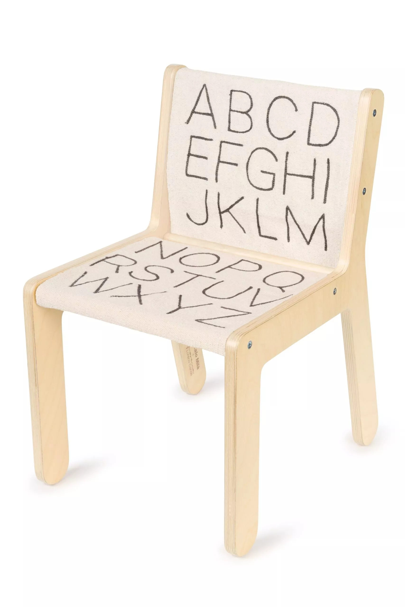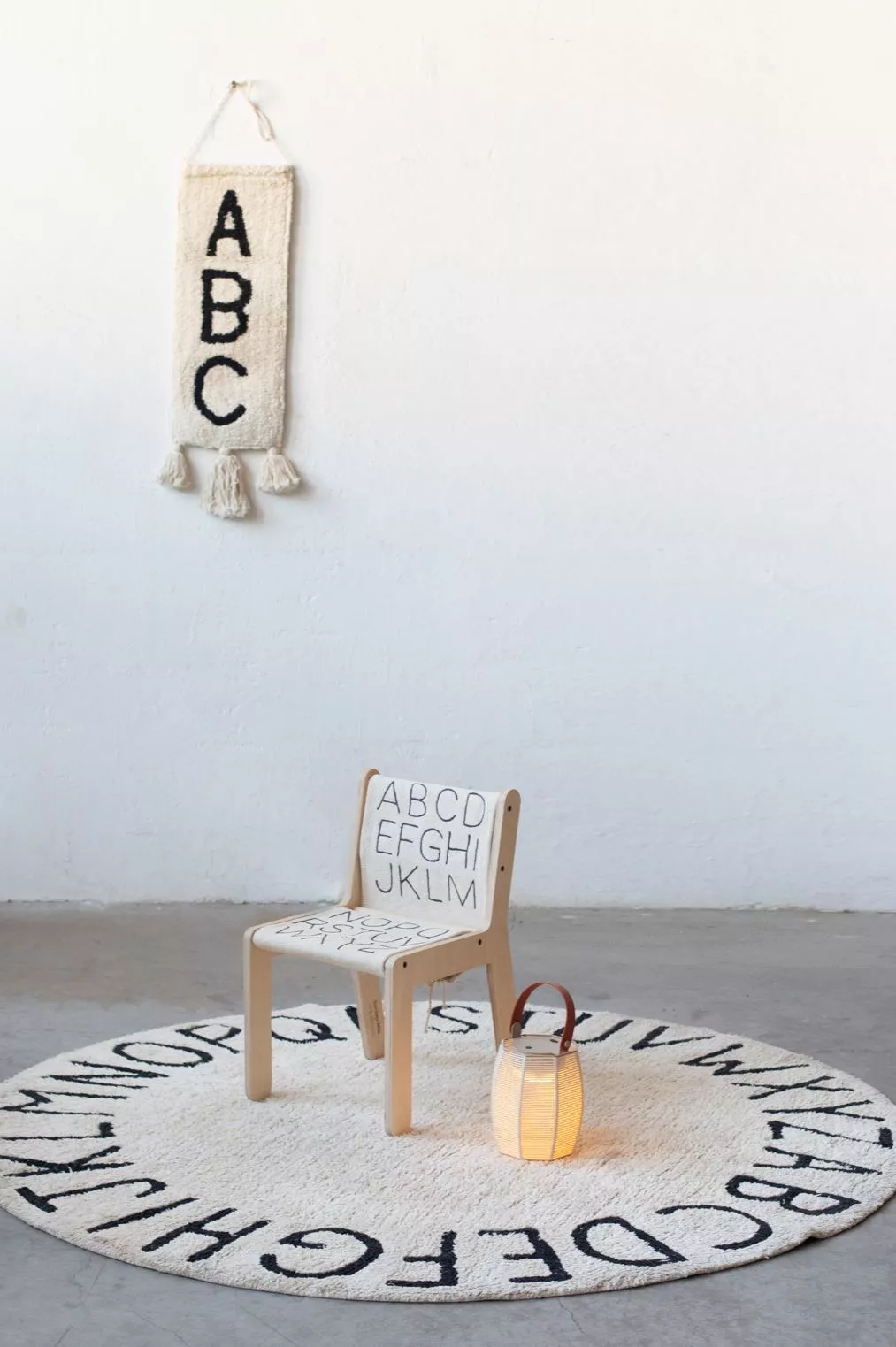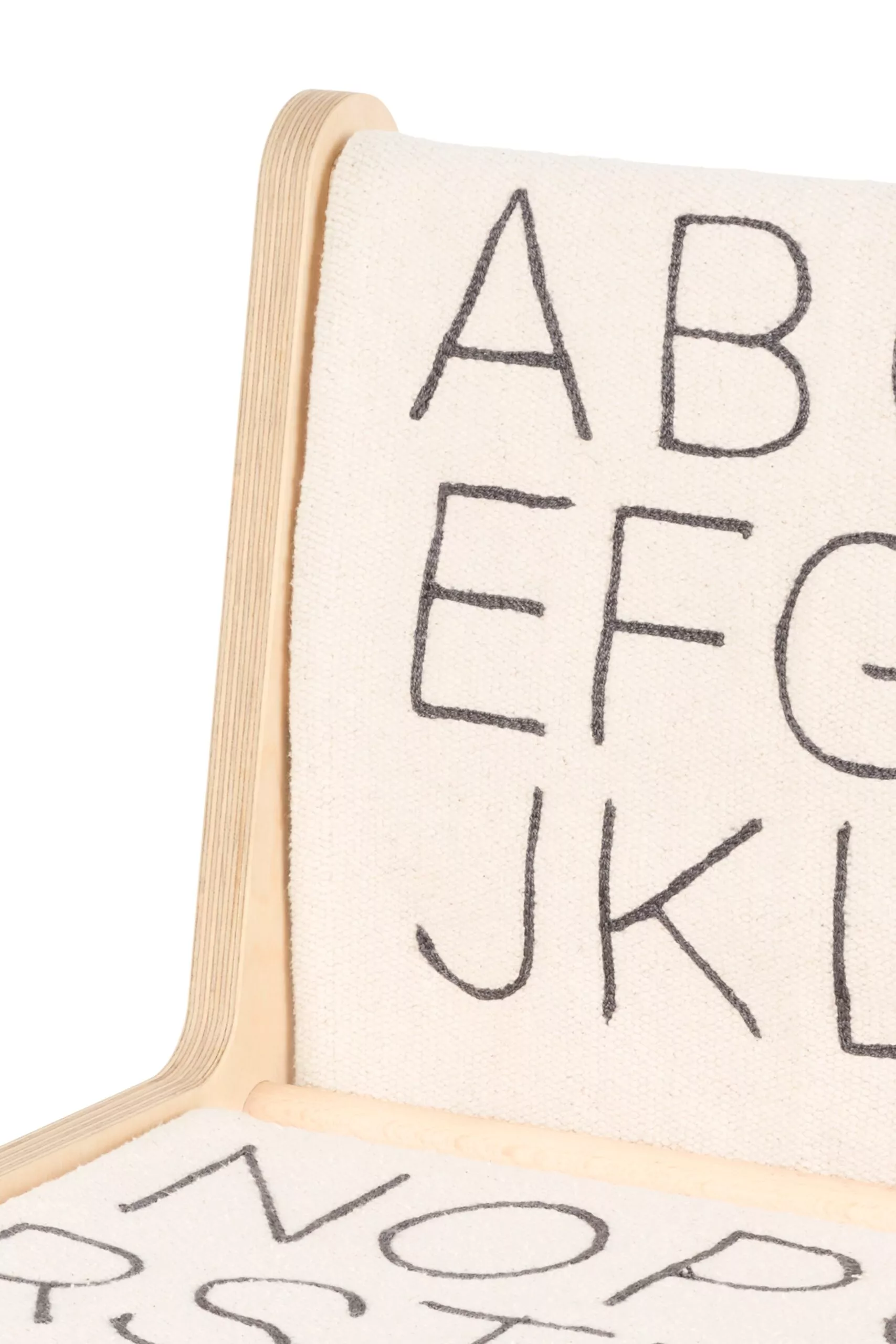 Zawarty tutaj wzór płótna do kolekcji dywanów i akcesoriów tekstylnych ABC, zapewniając idealnie skoordynowany wystrój, podczas gdy maluchy mogą uczyć się alfabetu. Istnieje wiele wersji płócien, które można z łatwością zdejmować i wymieniać. Każde krzesełko dla dziecka ma kieszeń za oparciem, w której dzieci mogą przechowywać małe przedmioty.