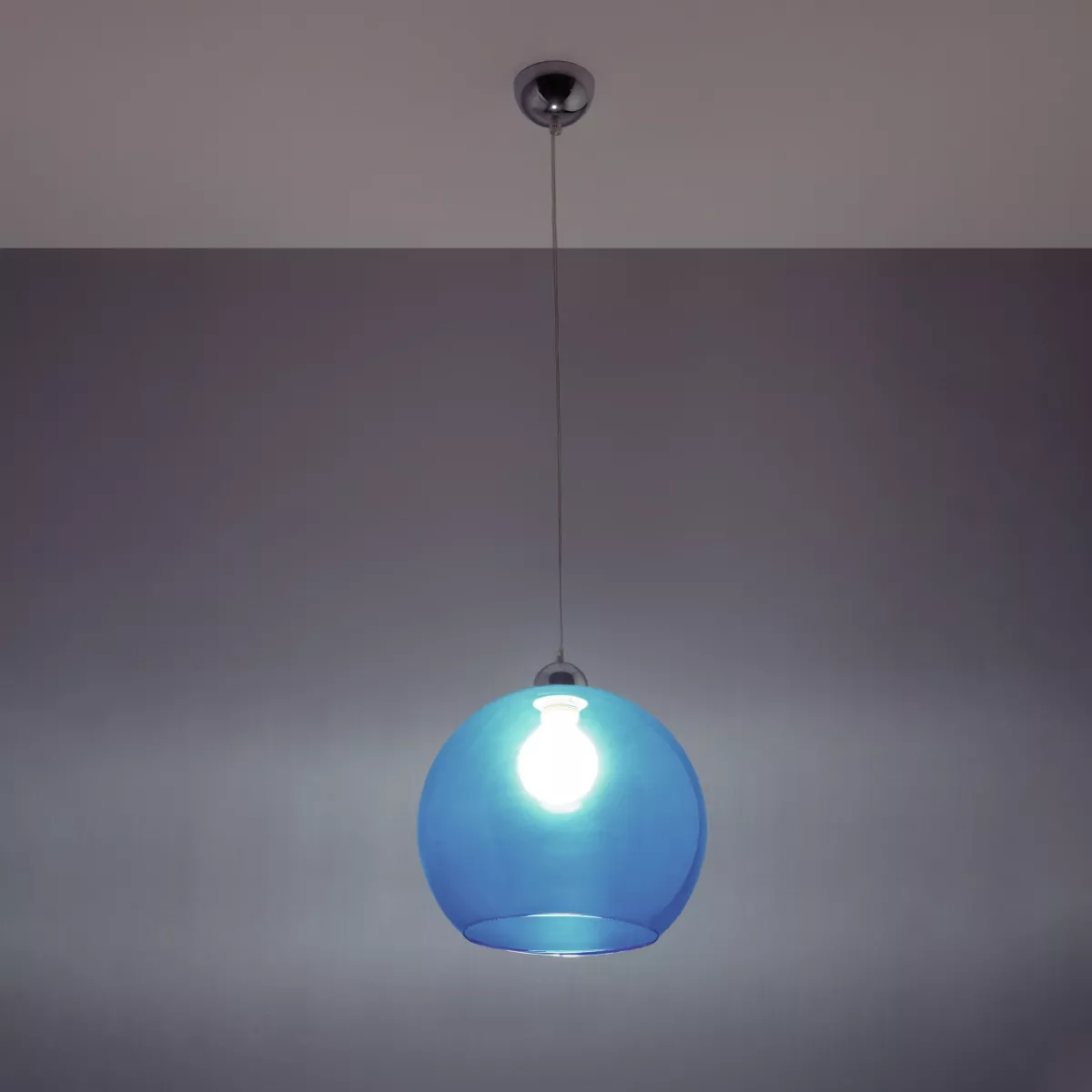 Klosz o kształcie kuli jest wykonany ze szkła, więc idealnie rozprasza światło w pomieszczeniu. W rezultacie dociera ono równomiernie we wszystkie zakątki i estetycznie się prezentuje.