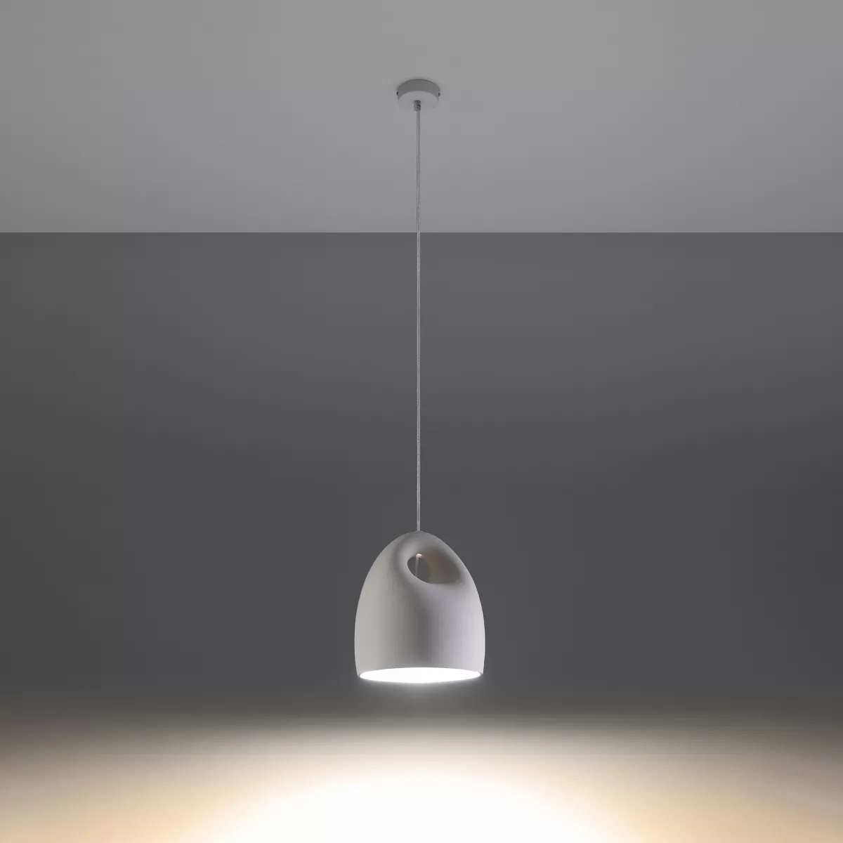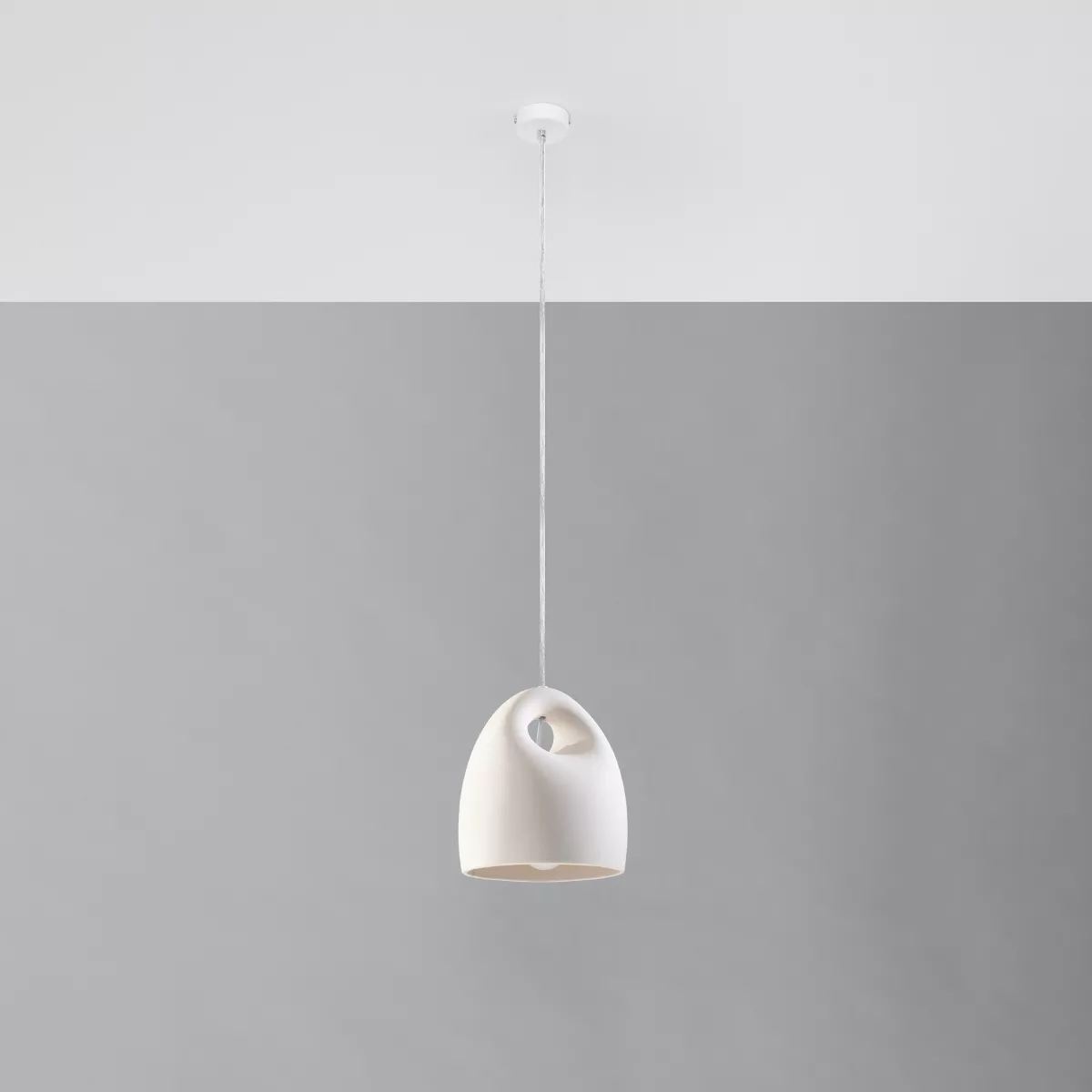 Lampa wisząca BUKANO rozświetli każde wnętrze. Jej ceramiczny klosz, geometryczna forma i uniwersalny kolor sprawią, że będzie doskonałym uzupełnieniem nowoczesnych industrialnych wnętrz, jak i tych bardziej minimalistycznych z klasyczną paletą barw.
