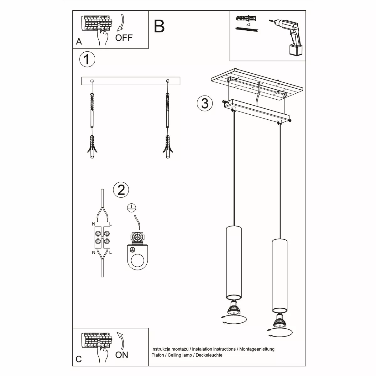 Źródło światła: GU10, 2x max 10W LED, 50Hz, ~230V, IP20, klasa ochronności I