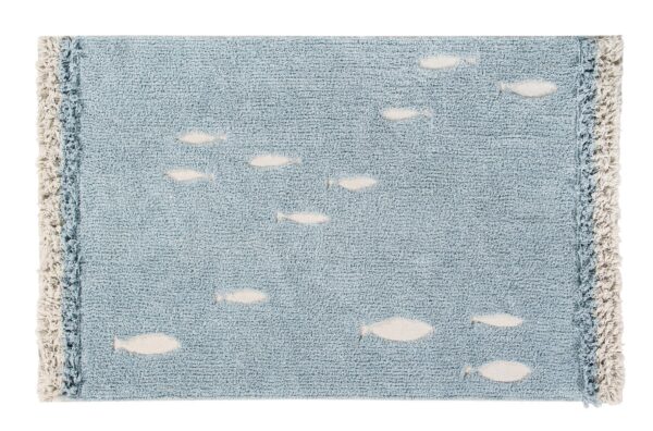 Dywan Ocean z małymi rybkami to główni bohaterowie nowej kolekcji dywanów Lorena Canals inspirowanej morzem. W tym dywanie umieszczono obszary w kształcie małych rybek, które nie są zaplecione i zostały losowo rozmieszczone na niebieskim tle. Na brzegach dywanu Ocean Shore znajdziemy frędzle tkane nad podstawą dywanu udające pianę z fal podczas rozbijania się o brzeg morza.