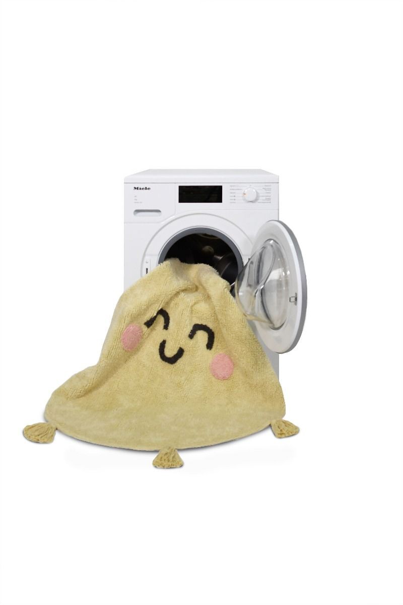 To uśmiechnięte słońce wnosi pozytywny nastrój do pokoju każdego dziecka, aby budzić się każdego ranka w dobrym nastroju! Ręcznie wykonany z bawełny organicznej dywan, który można prać w pralce, w jasnym odcieniu żółtego koloru z detalami w kolorze czerni i różu. Idealny do pralki o pojemności 6kg.