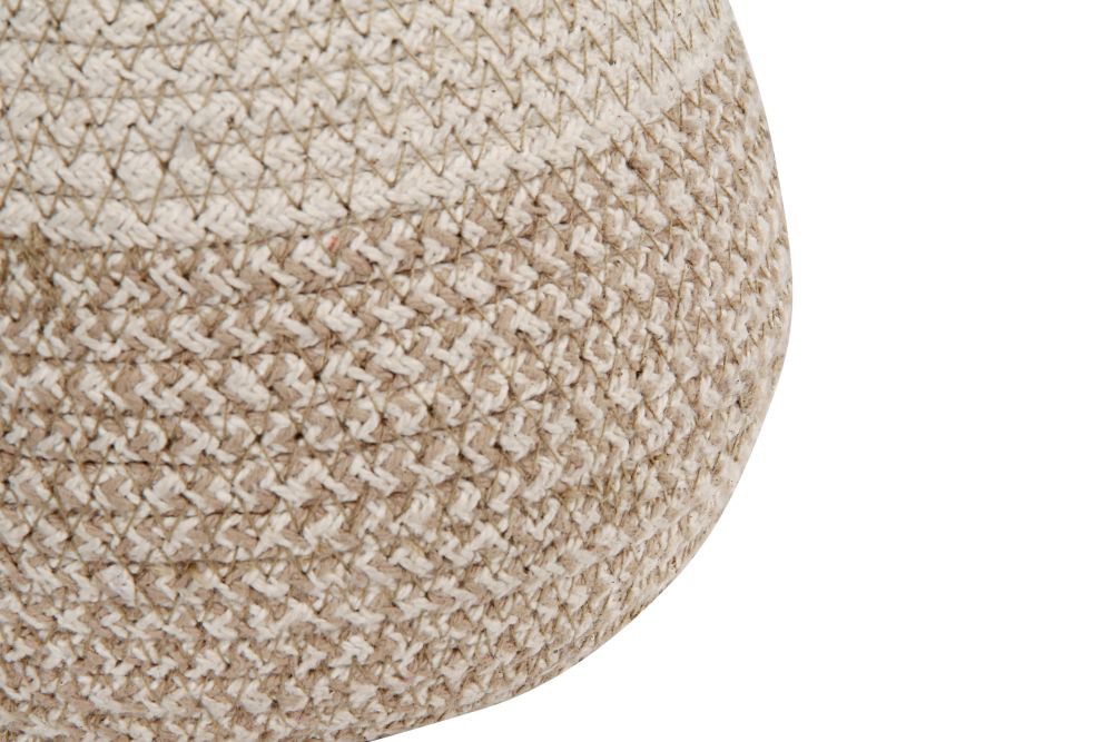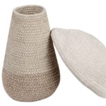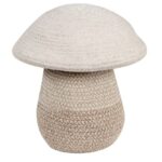 Kosz w kształcie grzyba składający się z dwóch oddzielnych części. Kosz dolny jest szerszy u dołu i wąski u góry, wykonany ze sznurka z naturalnej i mieszanej bawełny lnianej z kontrastowymi szwami w kolorze Soil Brown. Górna część kosza wykonana jest z naturalnego bawełnianego sznurka z wewnętrznie zagiętymi brzegami.