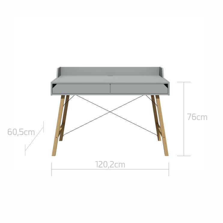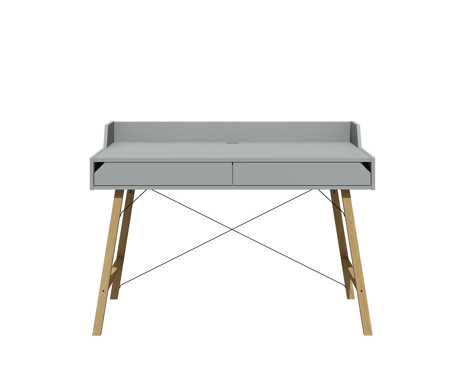 Biurko zaprojektowane z dbałością o szczegóły, proste w formie o minimalistycznym designie. Posiada dwie pojemne szuflady, ograniczenie blatu oraz otwór do przełożenia kabli, dzięki któremu utrzymasz na biurku porządek i unikniesz bałaganu w kablach.