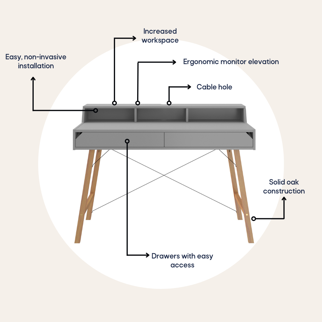 Nadstawka do biurka Lotta stanowi doskonałe uzupełnienie dla każdego, kto chce zwiększyć komfort, funkcjonalność i estetykę swojego miejsca pracy. Niezależnie od wieku – czy to dzieci, nastolatki, czy dorośli – każdy znajdzie w niej coś dla siebie.