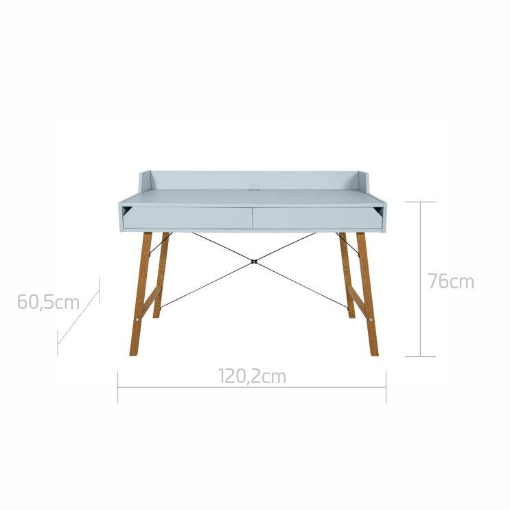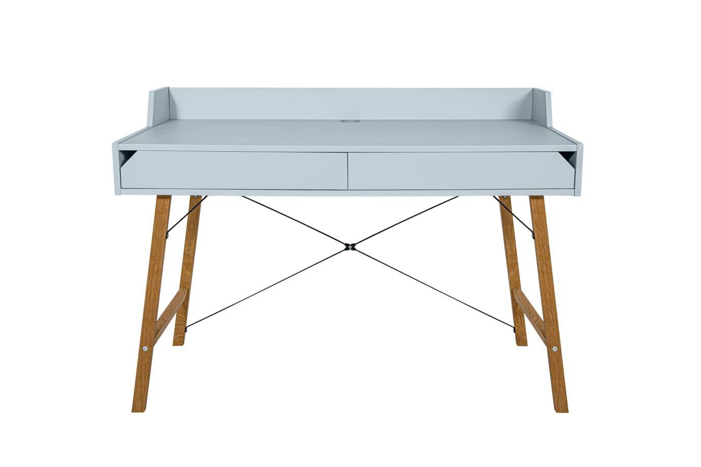 Biurko zaprojektowane z dbałością o szczegóły, proste w formie o minimalistycznym designie. Posiada dwie pojemne szuflady, ograniczenie blatu oraz otwór do przełożenia kabli, dzięki któremu utrzymasz na biurku porządek i unikniesz bałaganu w kablach.