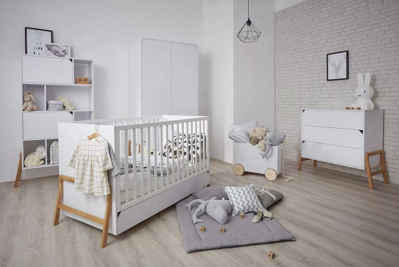 Obok łóżeczka, drugi najważniejszy mebel w pokoju dziecka. W kolekcji Lotta prezentujemy trzyszufladową, pojemną komodę. Idealnie pasuje do łóżeczka z tej samej serii, jest zbliżona do niego wysokością, dzięki czemu może stanowić miejsce, w którym trzymać można najpotrzebniejsze dziecięce akcesoria. Blat komody można wyposażyć w przewijak z tej samej kolekcji i umieścić po prawej, lewej lub na środku blatu komody.