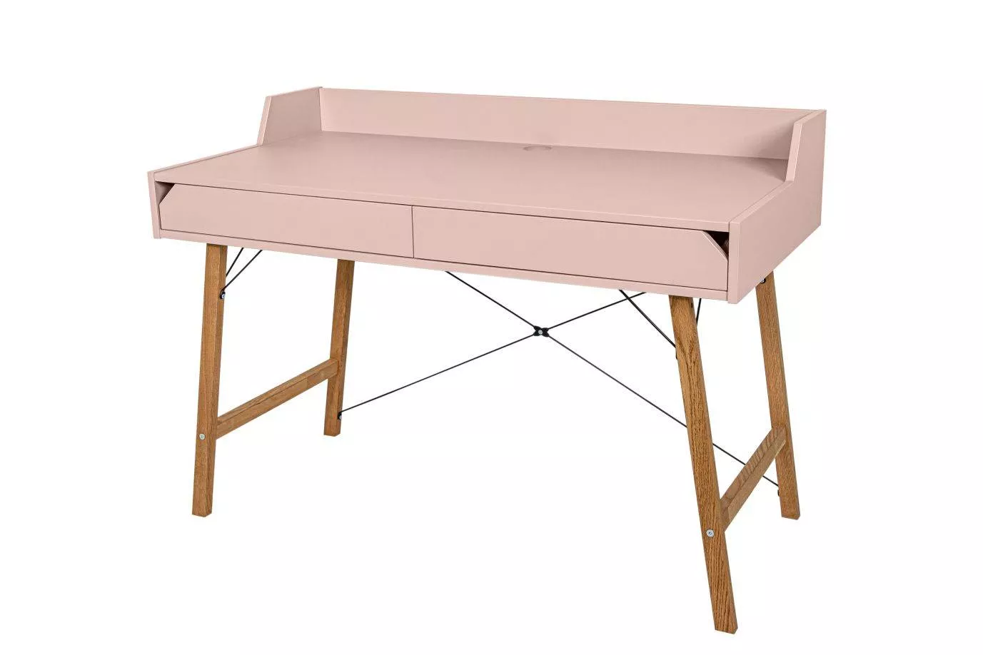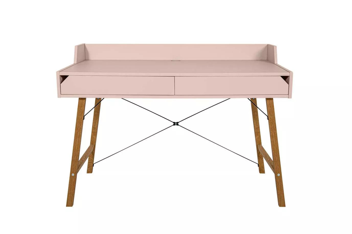 Biurko zaprojektowane z dbałością o szczegóły, proste w formie o minimalistycznym designie. Posiada dwie pojemne szuflady, ograniczenie blatu oraz otwór do przełożenia kabli, dzięki któremu utrzymasz na biurku porządek i unikniesz bałaganu w kablach.