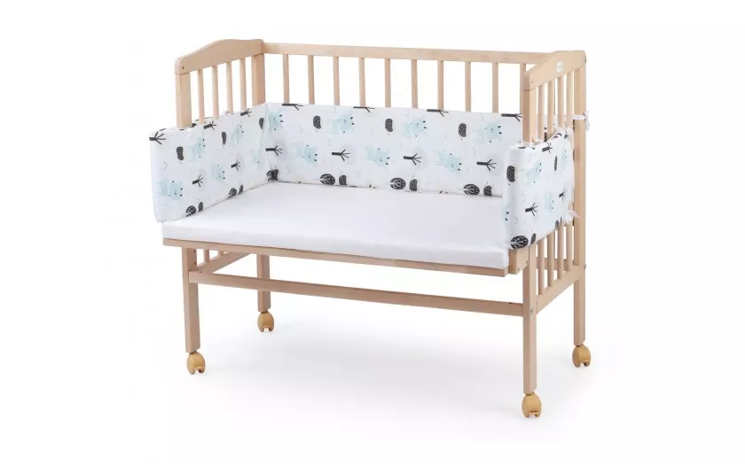 • Mebelek powstał z drewna bukowego w naturalnym kolorze. To sprawia, że łóżeczko dostawne z materacem wygląda bardzo estetycznie.