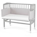 Nasze łóżeczko (dostawka) to drewniana konstrukcja na bazie drewna bukowego, które zostało pokryte ekologiczną farbą na bazie wody. Delikatny odcień szarości sprawia, że mebel sprawdzi się zarówno dla dziewczynki, jak i dla chłopca. Stelaż wykazuje się wysoką odpornością na uszkodzenia mechaniczne, dlatego może przez długi czas służyć jako praktyczne, dostawne łóżeczko dziecięce. 90 × 40 cm, czyli wymiary powierzchni do spania, to odpowiedni rozmiar zarówno dla noworodka, jak i kilkumiesięcznego bobasa. Dbając o sen każdego maluszka, łóżeczko dostawne jest wyposażone w wysokiej klasy materac, który stanowi gwarancję komfortowego snu. Robimy wszystko, co w naszej mocy, aby jakość produktów była na jak najwyższym poziomie. Drewniane łóżeczko dostawne jest tego jak najlepszym przykładem!