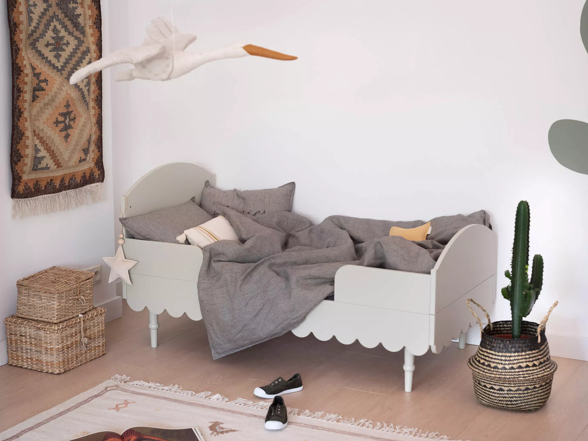 Łóżeczko 70 x 140 cm wyposażone jest w dodatkowe elementy, które umożliwiają konwersję na łóżeczko dla starszego dziecka. Zabezpieczają one również dziecko przed wypadaniem.
