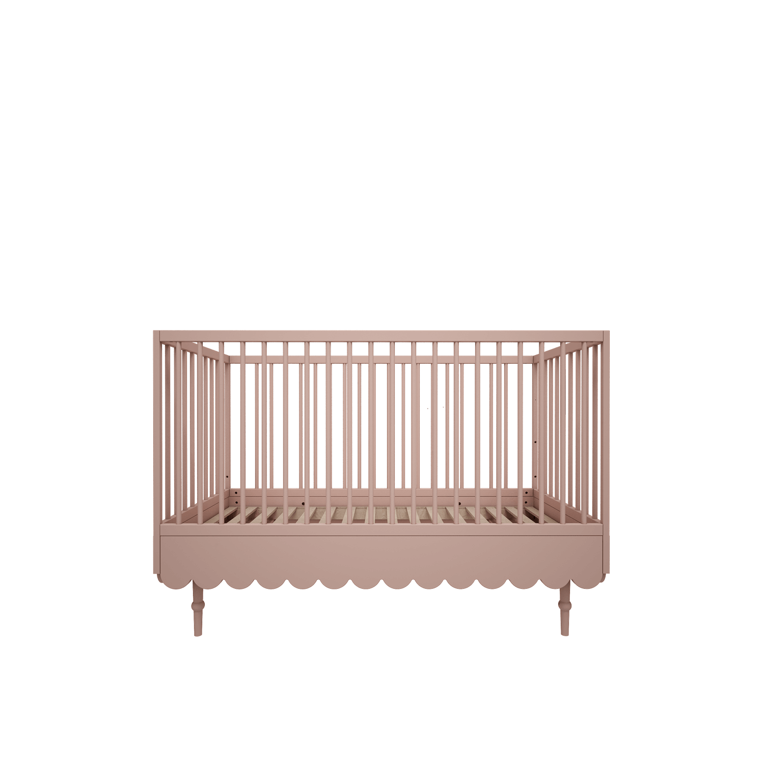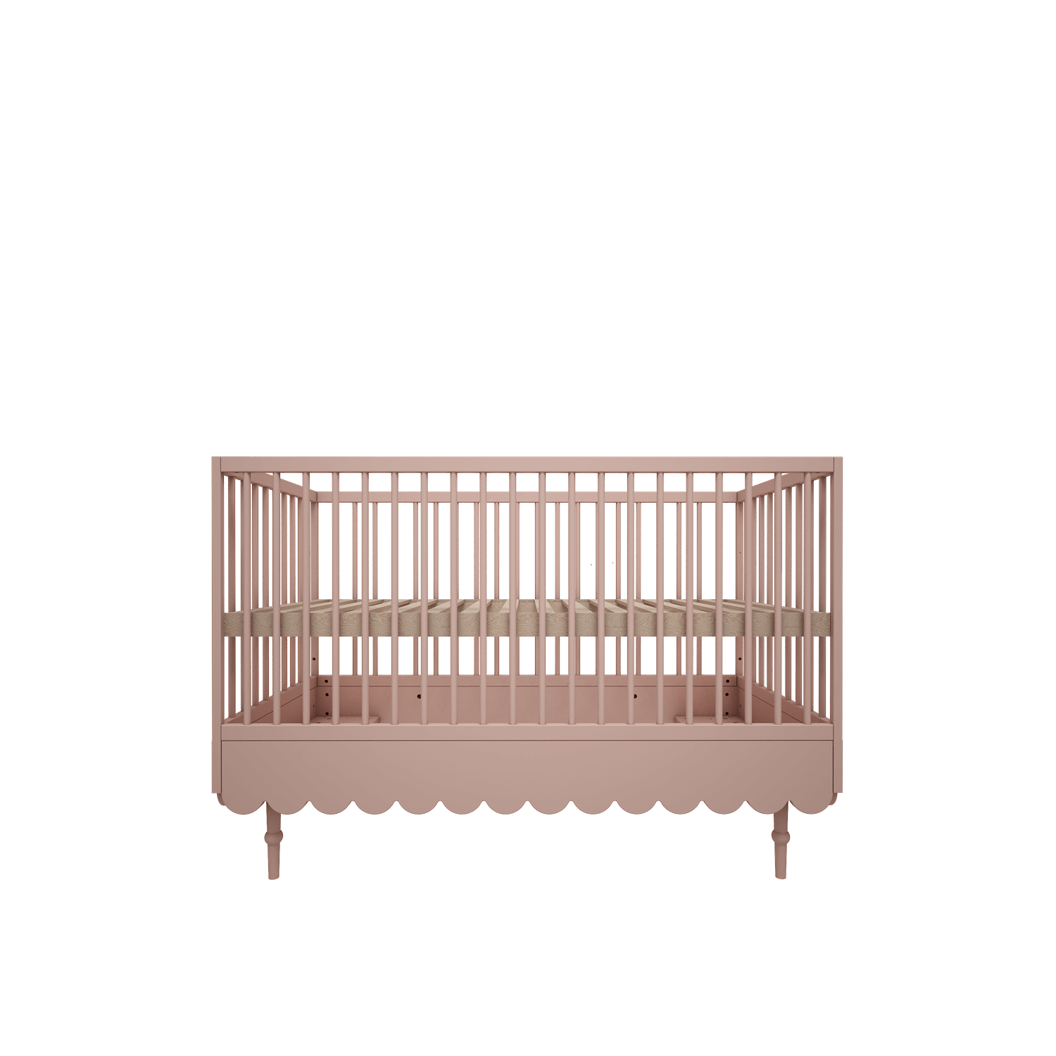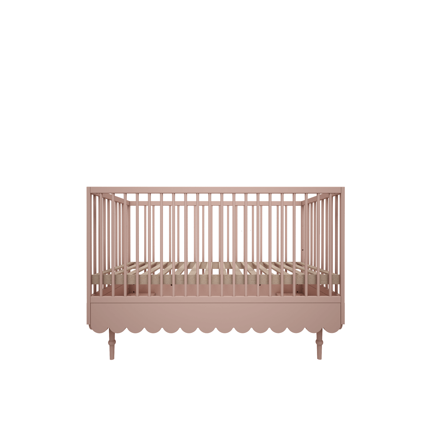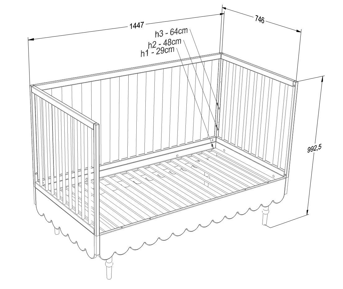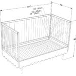 Łóżeczko BABUSHKA posiada 3 poziomy regulacji stelaża pod materac, 3 wyjmowane szczebelki w jednej z ramek bocznych oraz wyposażone jest w dodatkowe elementy, umożliwiające zmianę łóżeczka w stylowy tapczanik.