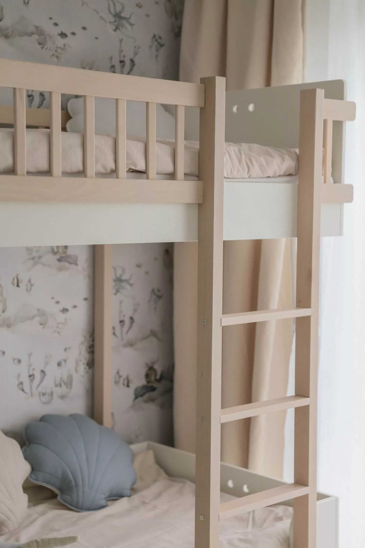 dopuszczalne obciążenie górnego i dolnego łóżka to 120kg; łóżko przebadane zgodnie z normami: PN-EN 747-1+Ll:2015 ,. Meble. Łózka piętrowe i łóżka wysokie. Część 1: ‘Wymagania bezpieczeństwa, wytrzymałości i trwałości ”