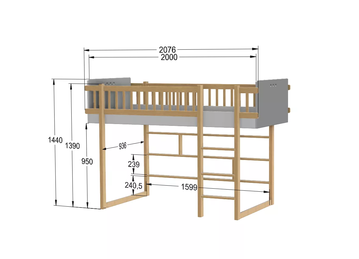 dopuszczalne obciążenie górnego i dolnego łóżka to 120kg; łóżko przebadane zgodnie z normami: PN-EN 747-1+Ll:2015 ,. Meble. Łózka piętrowe i łóżka wysokie. Część 1: ‘Wymagania bezpieczeństwa, wytrzymałości i trwałości ”