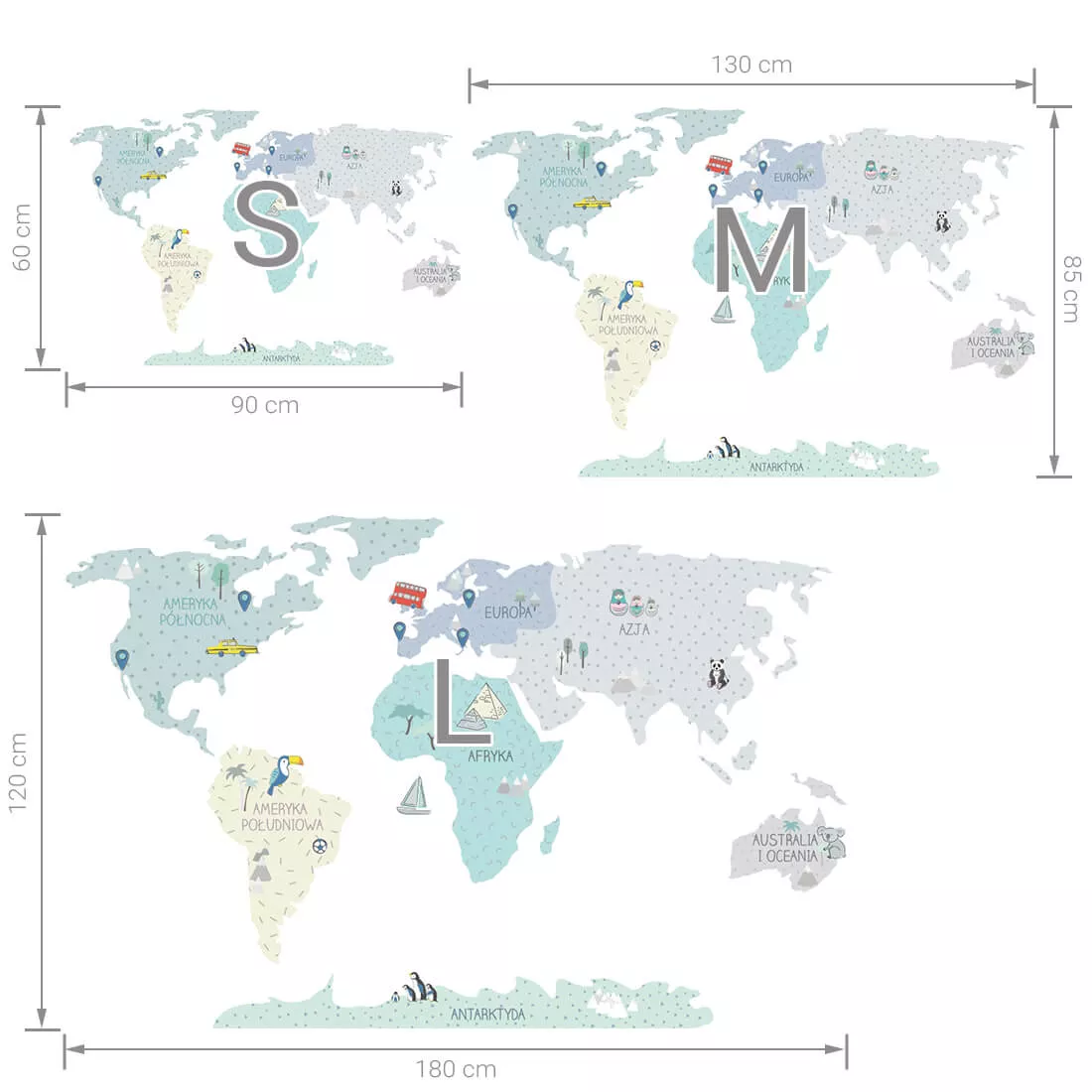 Wymiar naklejki podany jest po przyklejeniu na ścianę – gdy wszystkie elementy są w prawidłowej odległości od siebie.