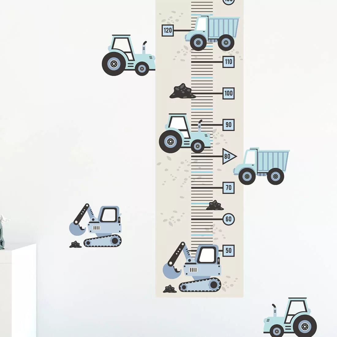 Miarka Pojazdy budowlane niebieskie – Naklejki na ścianę