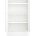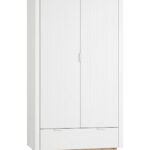 Wytworna szafa dwudrzwiowa z linii Miloo charakteryzuje się zaawansowanym systemem cichego zamykania. Wnętrze oferuje trzy półki oraz drążek do wieszania ubrań. Na dole znajduje się 1 pojemna szuflada.