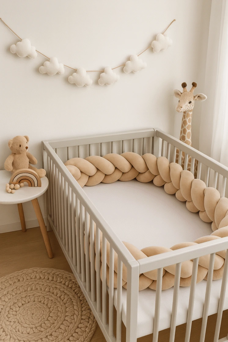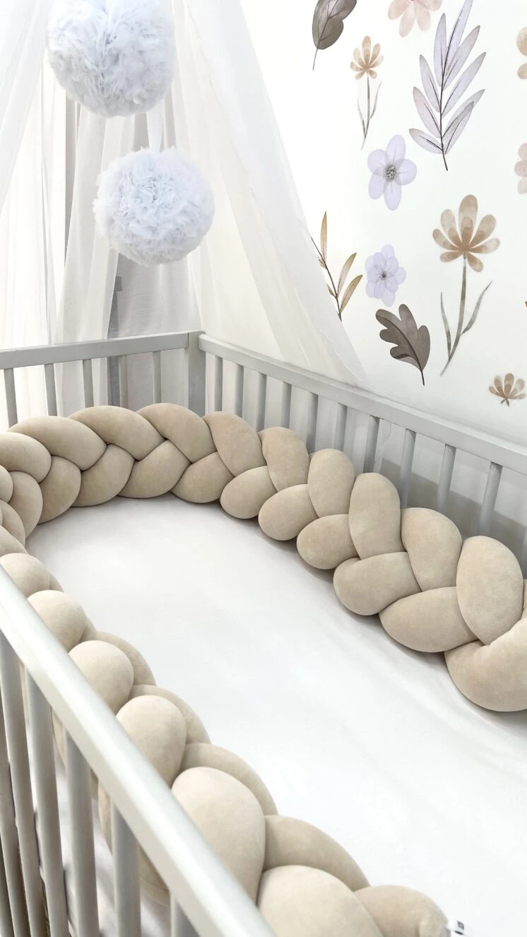 Dzięki ręcznemu wykonaniu każdy ochraniacz do łóżeczka jest unikalny i dopracowany w najmniejszych detalach. Elastyczna forma warkocza pozwala na dowolne ułożenie – możesz dopasować go idealnie do łóżeczka dziecięcego, kojca lub wykorzystać jako stylową dekorację.