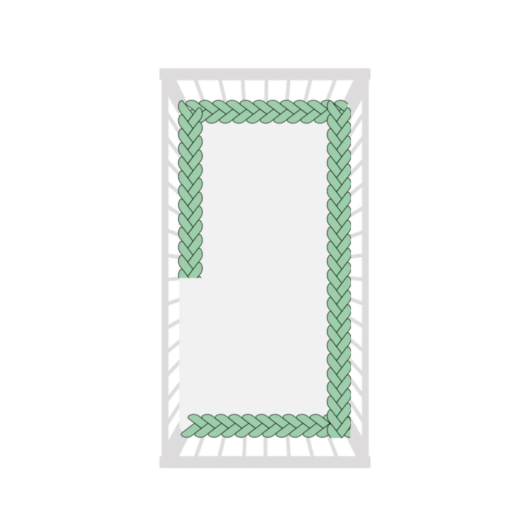 Dzięki ręcznemu wykonaniu każdy ochraniacz do łóżeczka jest unikalny i dopracowany w najmniejszych detalach. Elastyczna forma warkocza pozwala na dowolne ułożenie – możesz dopasować go idealnie do łóżeczka dziecięcego, kojca lub wykorzystać jako stylową dekorację.