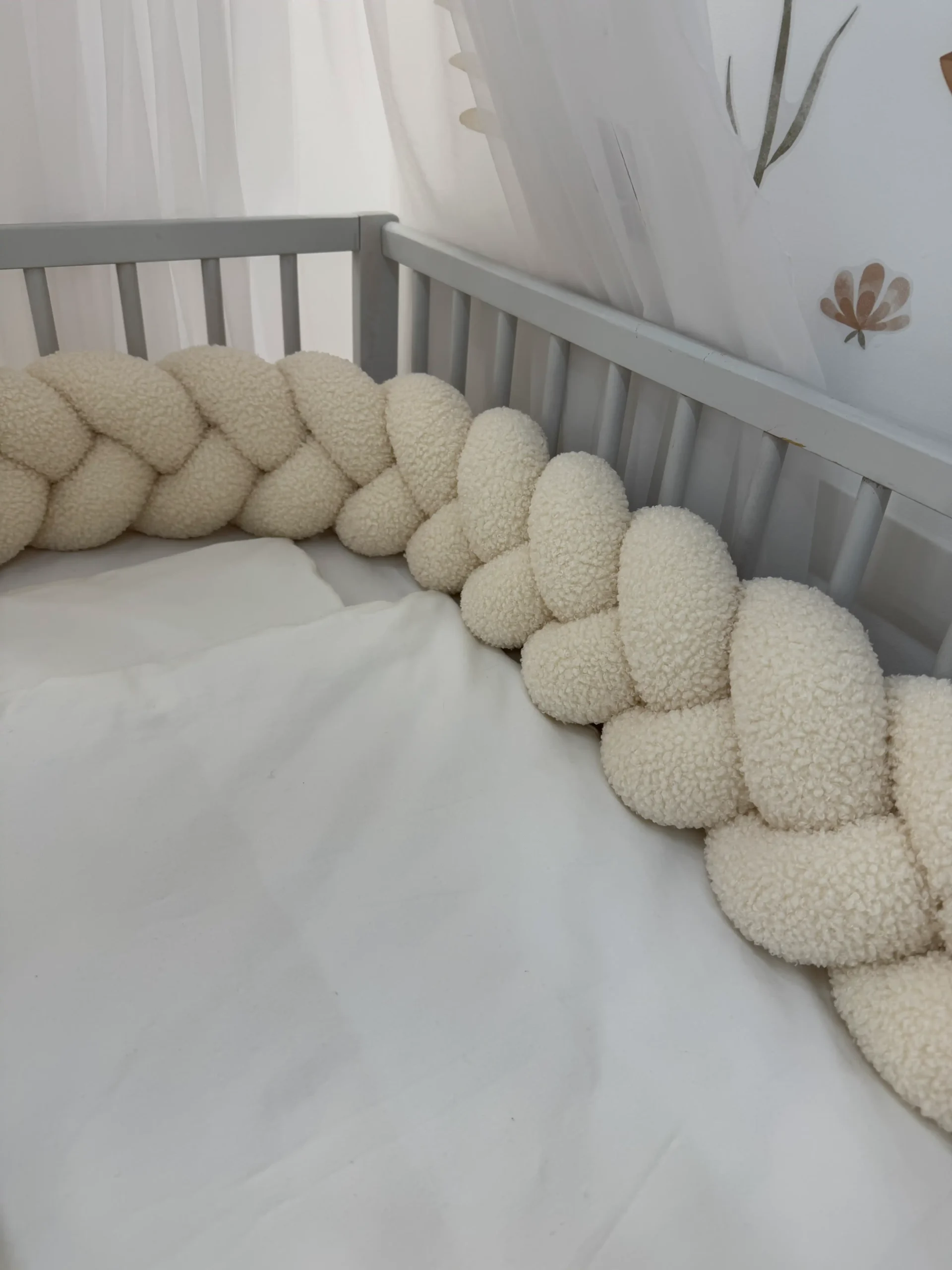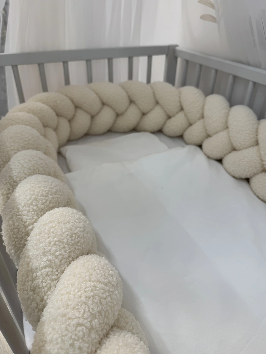 Ochraniacz warkocz klasyczny „Baranek” 240 cm to nie tylko praktyczny element wyposażenia łóżeczka dziecięcego, ale również piękna dekoracja pokoju niemowlęcego. Wykonany z niezwykle przyjemnej w dotyku dzianiny typu boucle („baranek”), zachwyca swoją puszystą strukturą i delikatnością – dosłownie jak miękka chmurka.