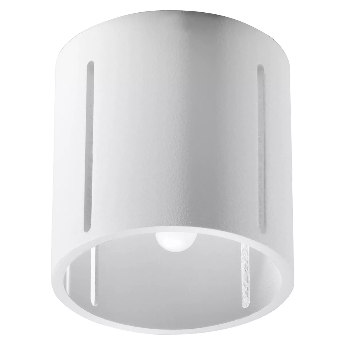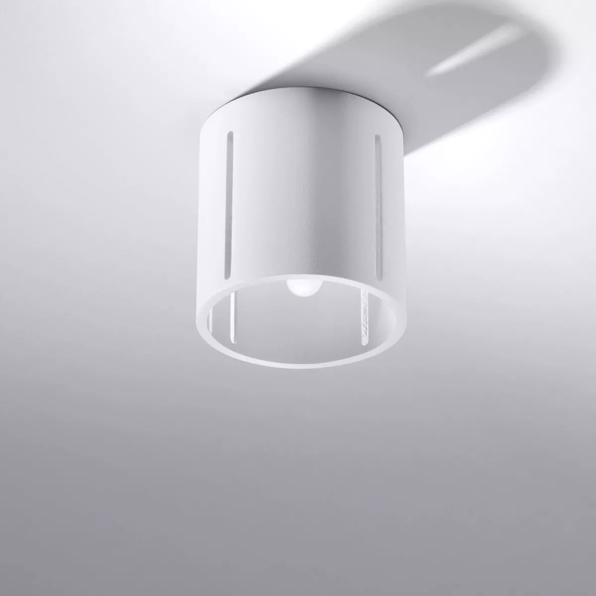 Plafon INEZ świeci w dół, ale blask sączy się także przez liniową perforację w bocznych ścianach klosza. Gdy go zaświecisz, zamienisz cały sufit w efektowną dekorację.