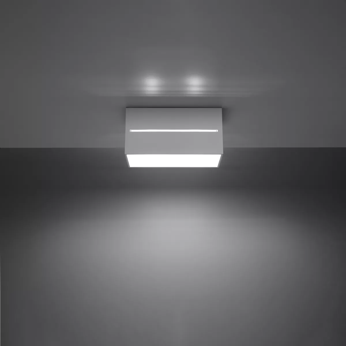 Ten plafon zdecydowanie przykuwa wzrok. Wykonana z aluminium lampa to swego rodzaju definicja nowoczesnego designu. Prostokątna konstrukcja świetnie współgra z prostymi liniami, które dominują we współczesnych wnętrzach. W kloszu znajduje się miejsce na dwie żarówki. Plafon pasuje do wielu stylów – polubią go także miłośnicy klasyki. Lampa sprawdzi się w każdej nowoczesnej, minimalistycznej przestrzeni.
