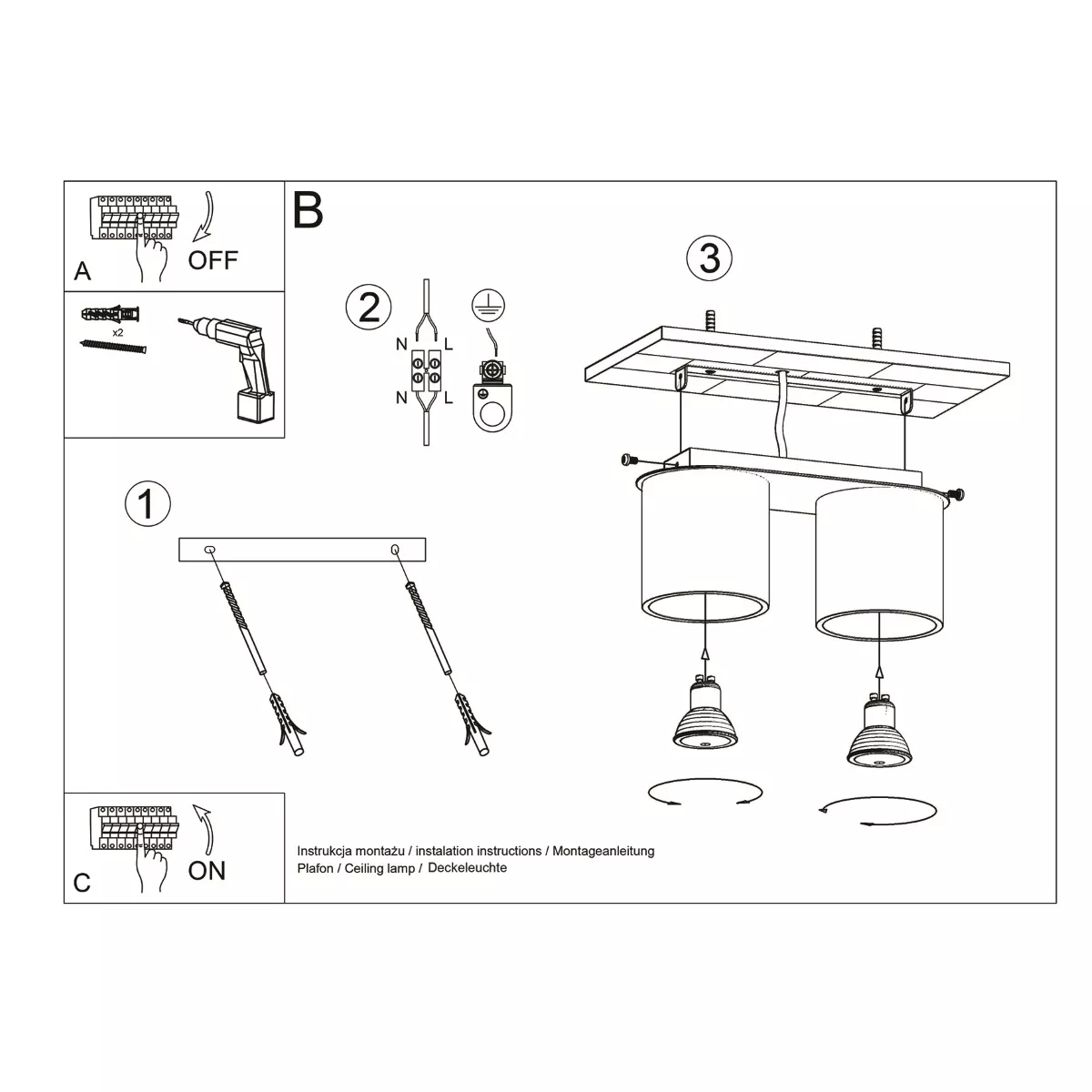 Źródło światła: GU10, 2x max 10W LED, 50Hz, ~230V, IP20, klasa ochronności I