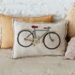 Wsiadaj na rower! Jazda na rowerze jest kamieniem milowym w dzieciństwie każdego z nas. Zrównoważony i zdrowy środek transportu do zwiedzania naszego Eko-miasta, w którym fajne dzieci jeżdżą na rowerach! Atrakcyjny, ręcznie wykonany design sprawia, że ta poduszka nadaje się do dekoracji każdej przestrzeni, od przedpokoju po salon!