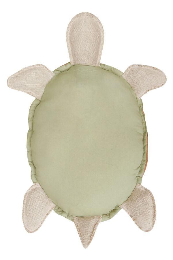 Mięciutka poduszka do przytulania! Z naturalnie wykończonymi płóciennymi łapami, głową i ogonem, poduszka Turtle ma pikowaną powłokę wykonaną z miękkiej popeliny z bawełny organicznej w kolorze kasztanowym i brzuch w kolorze oliwkowym. Wypełniona miękkim wypełnieniem.